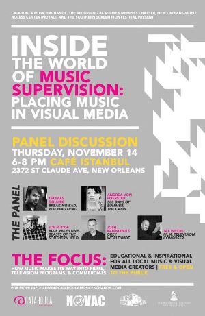 Inside the World of Music Supervision: Placing Music in Visual Media comes to New Orleans on November 14 and Lafayette on November 16.