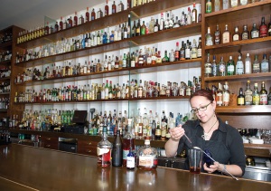 I like playing with weird ingredients. I’m a huge fan of taking simple, classic and elegant drinks and flipping them inside out. This is essentially a Sazerac, but I split the whiskey with pine liqueur and I even split the whiskey into two different types of whiskey, one from Tennessee and one from Kentucky.