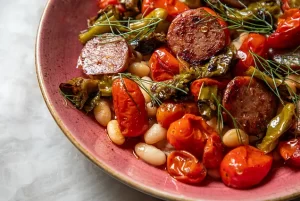 Other menu highlights include fried cauliflower with dried chili, lime, and ranch; chicken cutlet sandwich with arugula, pickled pepper, olive, pecorino, lemon, and ciabatta; house- made sausage with white bean, shishito pepper, grape tomato, and Castelvetrano olives; and braised beef with kale, roasted sunchokes, oyster mushrooms, and artichoke.