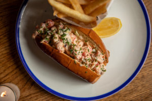 Other menu highlights include the Seaworthy Roll with crawfish tails, celery mayo, and fries. Shrimp and grits and a whole Maine lobster with crispy noodles for two. For meat lovers, the menu includes an eight-ounce burger with fontina, pancetta crisp, roasted tomato jam and remoulade. Also available is a bone in New York steak. The steak is served with seasonal mushrooms, black garlic butter, and charred cipollini onions and serves up to two.