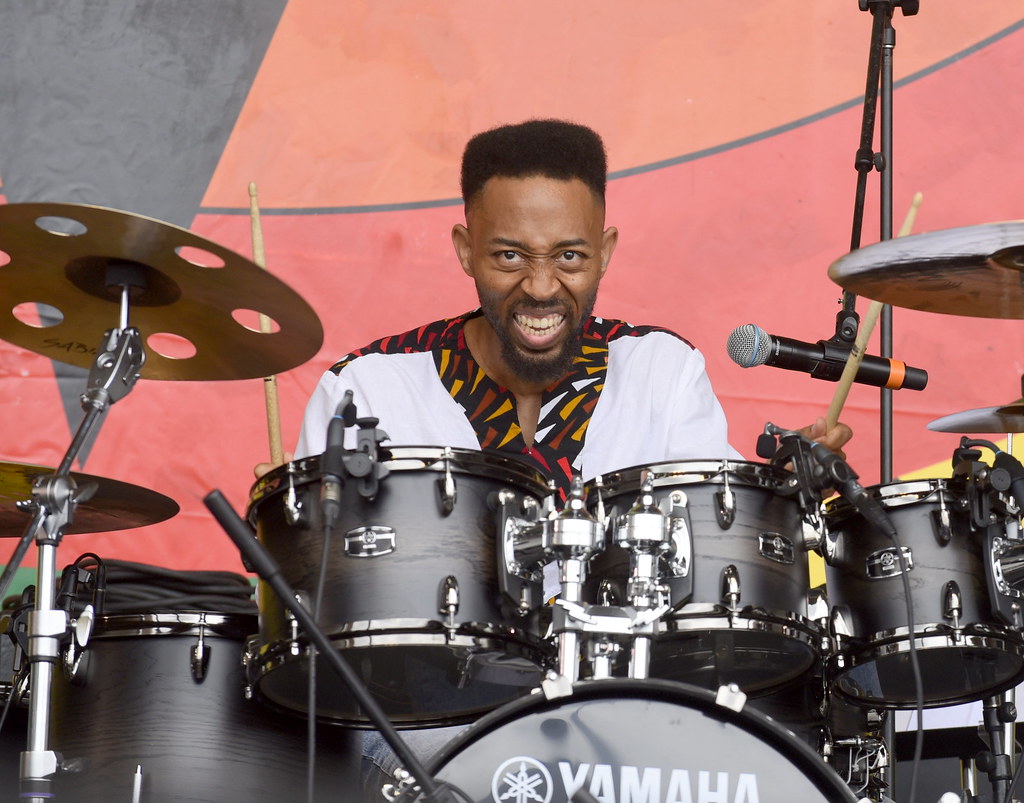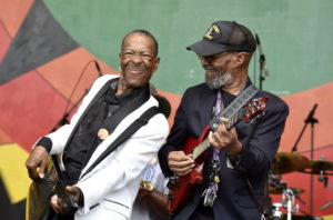 The Batiste Brothers’ tribute to Russell Batiste. The Bastistes’ show on the Congo Square state was a family affair—with a heavy emphasis on “family.” “Family is important,” they reminded us between their originals “Louisiana” and “It’s About Family.” David Russell Batiste, Sr. (recently honored with a Lifetime Achievement Award in Music at OffBeat‘s Best of The Beat Awards) and his brothers repeatedly reminded us of the recently deceased nephew’s ability to get the crowd fired up, too. Although Jon Batiste—whom many attendees undoubtedly hoped would appear—was not present, seemingly every New Orleans musician with his last name appeared here, including a pre-schooler on maraca. The family kept the crowd on their feet for their full set, running through funk classics like “Groove Me” and spirituals like “Down by the Riverside,” right up until the band cut the show short, 17 minutes before its scheduled end. Perhaps with a series of snippets of songs and medleys, they’d simply exhausted everything they’d rehearsed.
