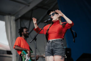 People Museum by broad daylight is an interesting notion. How would they come off? Southern Gothic in the sun. The big sky was overcast, so that helped a bit, but ultimately the answer was clear once they kicked off strong with “Back To Myself” attired in red, black, and white. By the time singer Claire Givens sang the chorus “Let me love you, baby” of the next song, the crowd was fully in, and enthusiastic. The power of exceptional brass duo— trombonist Jeremy Phipps and sousaphonist / bass player Charles Lumar II—got an extra kick with added saxophone for “Butterfly.” Versatile drummer Aaron Boudreaux filled out this supergroup-of-sorts that largely played from their superb groundbreaking album Relic.