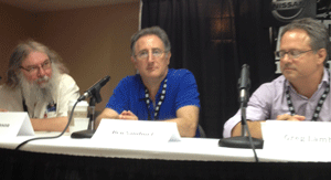 Panelists John Swenson (OffBeat/author), Ben Sandmel (author and hsitorian) and Greg Lambousy (Louisiana State Museum).
