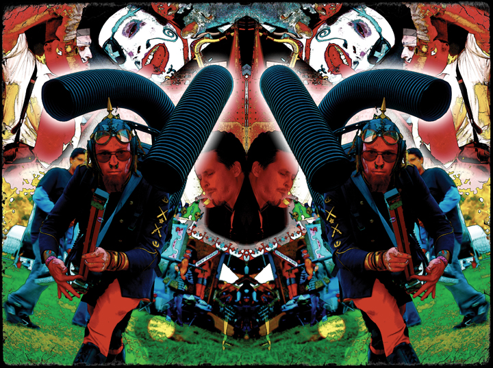 Every photograph is a snapshot, an individual moment in time. Rarely can it capture the entirety of an experience. Thus, I am fascinated with the medium of collage — combining those individual moments into a single image that captures the totality of the experience. The photos used in this collage were taken at Voodoo in 2007, assembled and manipulated to convey the deliberate and spontaneous chaos, the beauty, the creativity and the craziness of the festival. These are “my boys from the ‘hood,” The New Orleans Bingo! Show, Noisician Coalition and the Morning 40 Federation. Once upon a time, we were all Quarter rats, doing the Decatur Street crawl, witnessing many a bleary-eyed sunrise after a night of doing no good, stumbling home (a.k.a. the walk of shame) through the Ninth Ward. We’ve grown up over the years, channeling the craziness into our individual forms of artistic expression. This is my tribute to their tribute to our lives.