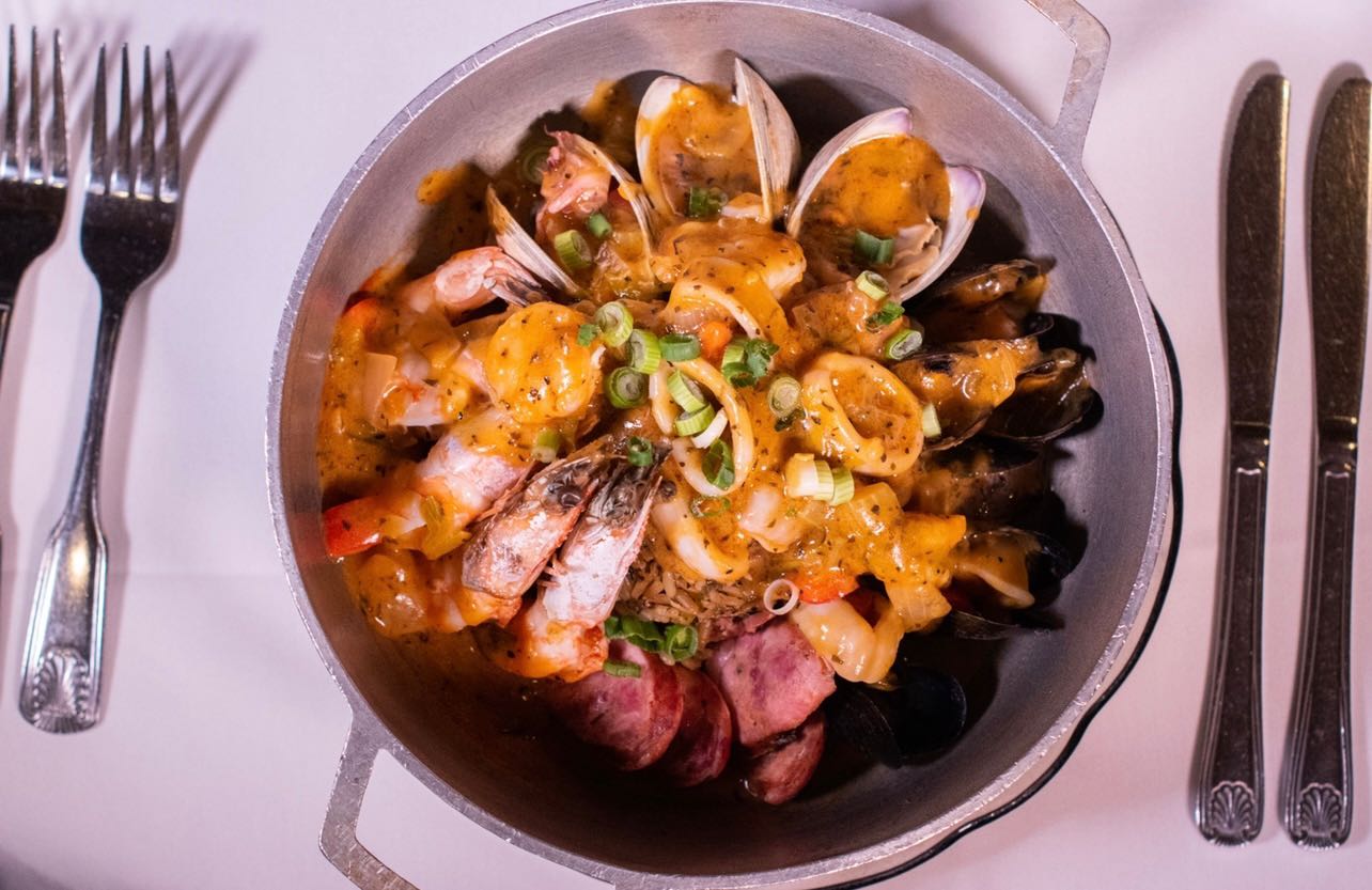 The menu here is as elegant as the space. One of the signature dishes is the whole crispy flounder served with citrus chili sauce and jasmine rice. Hughes also recommends Louisiana cioppino, a stew consisting of basil garlic tomato sauce, gulf fish, scallops, shrimp, mussels, clams, and buttered linguini in a hot pot.