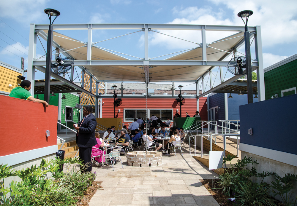 Efforts are underway to make that happen. On May 6, the Oretha Castle Haley Boulevard Merchants & Business Association launched its inaugural First Fridays event, featuring happy hours, live music and extended gallery hours at participating venues. Although the event got off to a slow start, spots like the patio at Roux Carré were bustling by sunset as diners sampled ceviche and pupusas from the Pupusa Lady, po-boys and gumbo from Estralita’s Express, jerk and curry chicken from Johnny’s Jamaican Grill, cochon de lait po-boys from the Splendid Pig and fresh-squeezed juices from the Youth Empowerment Project’s Juice Box stall.