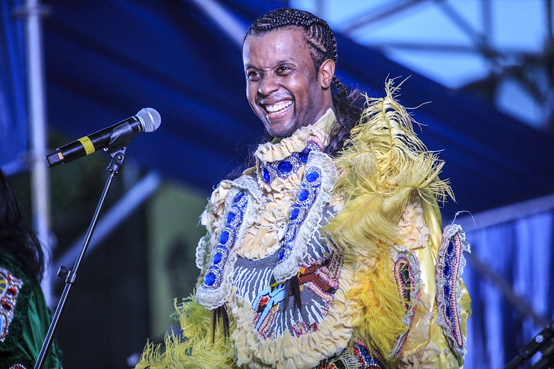 Big Chief Bo Dollis Jr., Wild Magnolias, Congo Square New World Rhythms Fest, New Orleans, March 21, 2015. By Willow Haley.[/caption]
