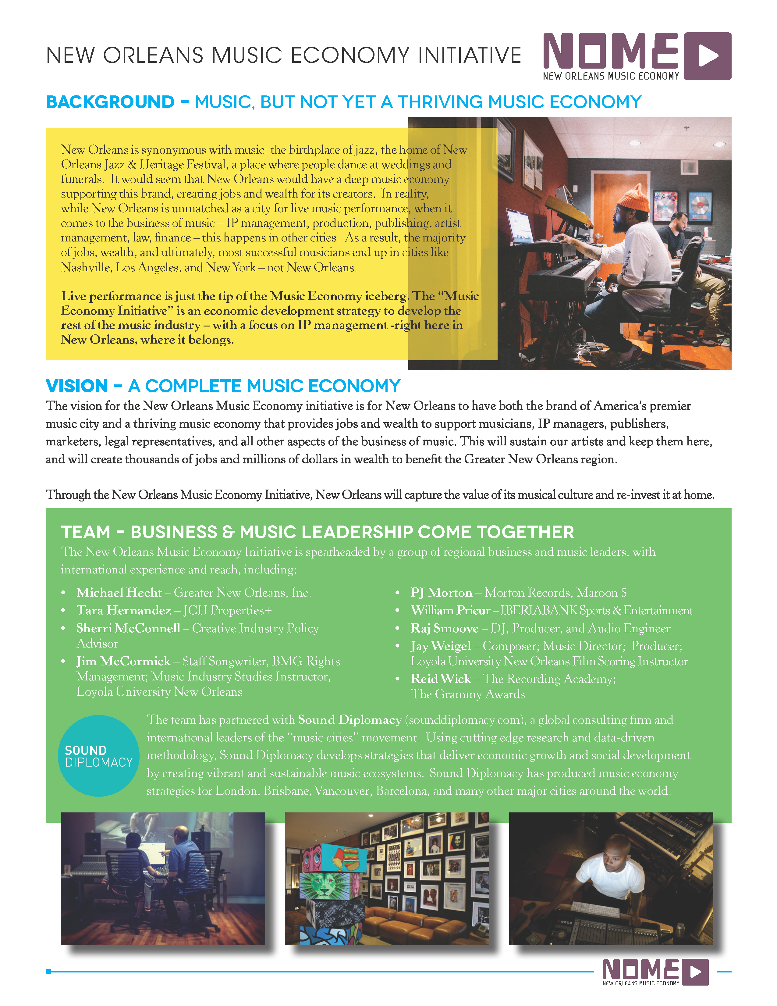 GNO, Inc. started a music business development entity entitled NOME (sound familiar?) and wisely commissioned a study to determine what New Orleans’ resources and potential are, and a resultant plan, based on that information, to develop the local music industry. There’s $250,000 dedicated to this effort, $150,000 of which is allocated to the study to be performed by a Europe-based consultant, Sound Diplomacy, that’s conducting the year-long research. The rest of the money is tagged for “implementation,” the meaning of which, hopefully, will be revealed at the conclusion of the research.