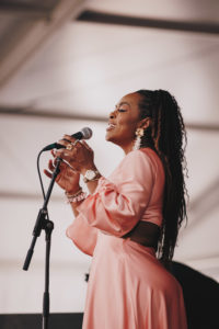 Quiana Lynell had the Jazz Tent at her feet during her set on April 29… What’s new? There was something really quite powerful in her interpretation of Duke Ellington’s “Come Sunday” — intentionally echoing Ellington’s 1958 recording with Mahalia Jackson — which she followed in an abrupt but graceful transition into Nina Simone’s “I Wish I Knew How It Would Feel To Be Free.” Both of these being anthems and tributes to the plight of black people in the US, from different eras and with different musical approaches, attitude and outlook, still resonate through the ages when placed in the hands and voices of the most apt of artists.