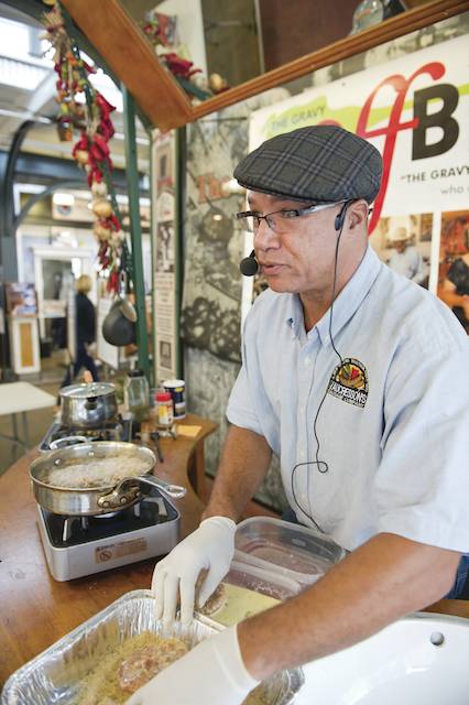 You hear a lot about the seasoning that goes on in New Orleans, but you don’t want to put too much. A little black pepper, a little salt, some fresh seasonings — green onion, bell pepper, and celery — you mix that up, a little onion, and you let those seasonings give you what you need.