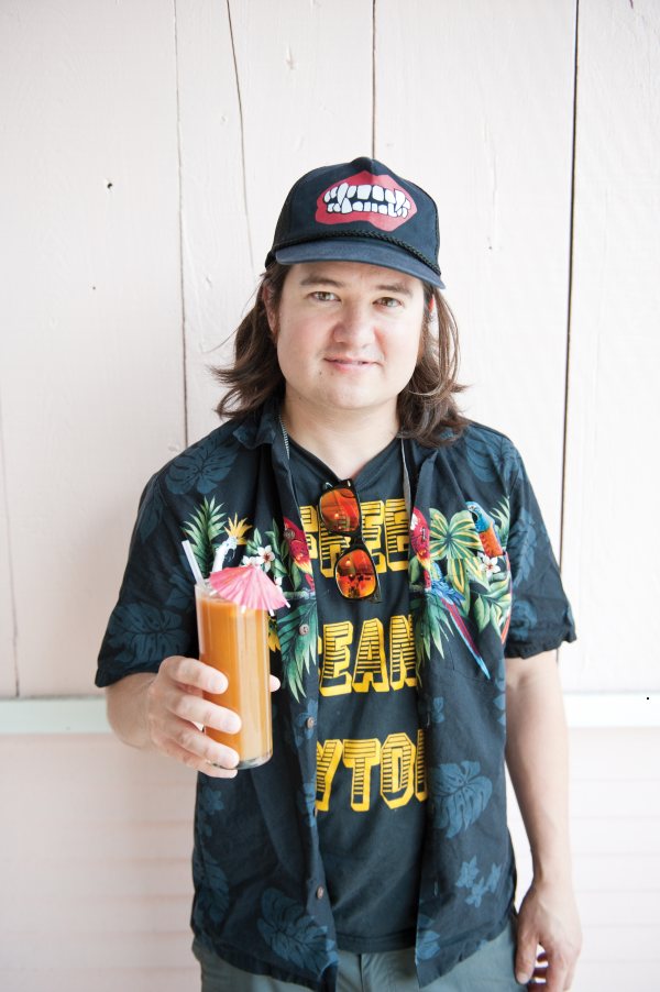 I discovered tiki drinks in New Orleans. I left Alaska when I was 17, so I wasn’t quite in the drinking realm yet. Drinking has definitely evolved since I’ve been down here. As a bartender, you want to keep up. The palate of the average drinker has evolved over the years too. People are more knowledgeable about what they’re drinking. They want quality drinks that are less worse for you. I used to use canned juices, but I don’t do that anymore. We use all fresh: pineapple, orange, lemon, lime—we juice every day. We also make our own syrups, with cinnamon sticks and vanilla beans. And bitters; raspberry bitters, ginger root bitters, to cut the sweetness. I use Campari sometimes too, and we use a lot of orgeat, almond syrup. You heat one cup almond milk and mix in two cups sugar, toast up about a quarter cup raw, whole almonds, and put them in there, let it cool. You leave the almonds in. People always wonder what it is, and it’s a good conversation starter. And I almost forgot; you add rose water and orange blossom water, about 10 drops of each.