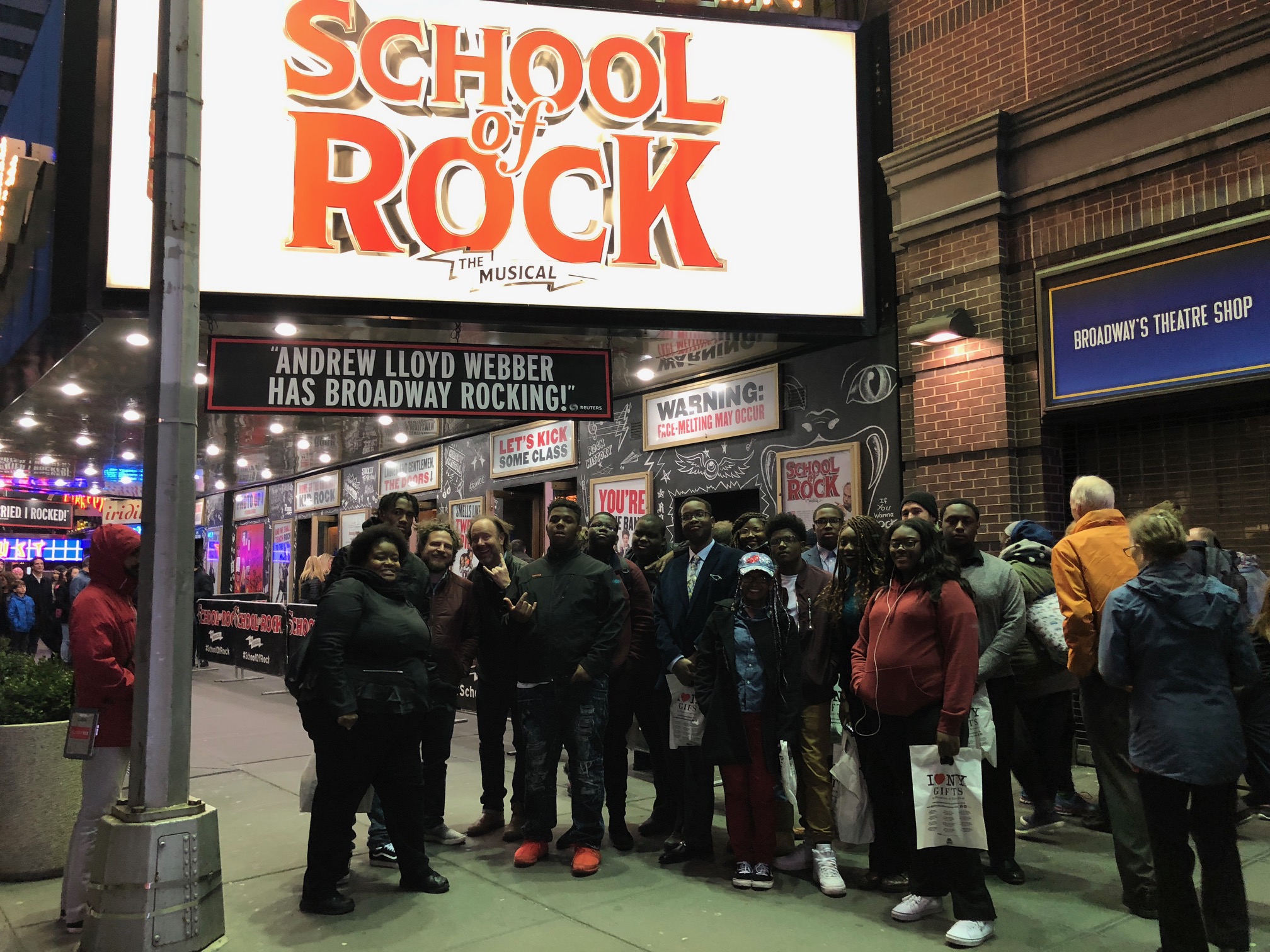 Spirits were high as we all headed back to Manhattan for a walk around the neighborhood where we are staying, which included visits to the Freedom Tower and the 9/11 memorial. No rest for the weary, as we headed uptown to Times Square for an evening of pure fun and entertainment. A group dinner preceded a walk up Broadway right in the thick of it all (including an obligatory stop at a souvenir shop that yielded some questionable purchases) which led us to the doors of the Winter Garden Theater for a performance of School Of Rock The Musical, which for most of the students was a first. The show was awesome and featured really young and talented kids in the band shredding on their respective instruments. A stand out was Gabrielle Greene playing the role of Tomika, whose gospel-tinged vocals brought down the house.