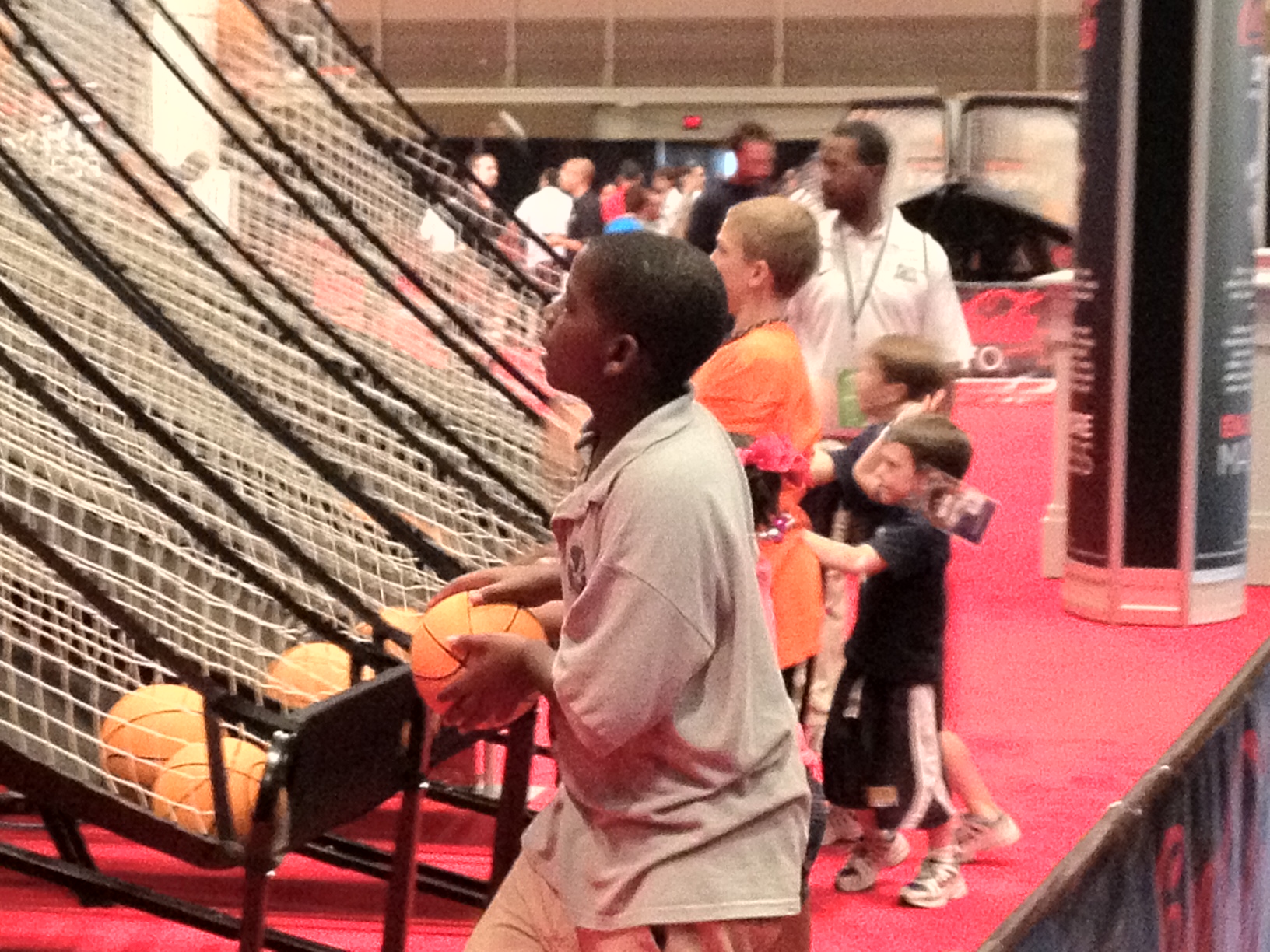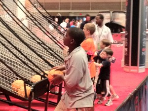 For the most part, Bracket Town is a series of skills challenges, my favorite being a row of lowered baskets on which kids with average-at-best hops could dunk. If it wouldn’t have been embarrassing, I would have tried this. The set-up, like most of the games at Bracket Town, looks built to last not only the weekend but the month if it had to. There are also games for fans of other sports. There’s a football agility drill, a passing precision drill, and a lacrosse goal that players can shoot at. For adults, the LD pavilion showing off its appliances had open dryers that adults could competitively throw laundry into.