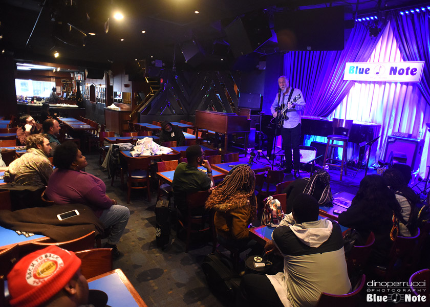 Our host, Alex Kurland, who books the Blue Note and also co-manages the Soul Rebels, put together an amazing afternoon of musical education and entertainment for us. Once he gave our group a history of the neighborhood and the club and explained his role as the Blue Note’s talent buyer, legendary jazz/funk guitarist John Scofield took the stage and captivated us with a Master Class that included his discussing his deep respect for New Orleans, playing with Miles Davis and then calling our students to the stage for a funky jam session.