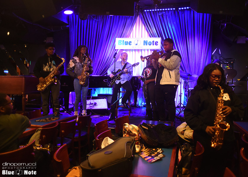 After the Master Class, we hit the West Village shrine, John’s Pizza, and then had an hour to walk around before heading back to the Blue Note for Scofield’s early set. As we walked through Washington Square Park, the Shorty students took out their horns and drums and began to play. After launching into Rebirth’s “Why You Worried Bout Me?” it didn’t take long until a group of about 100 onlookers gathered around the band and suddenly it felt like we were back home. These young musicians came to play and to represent New Orleans! Check out footage of their performance in the park here!