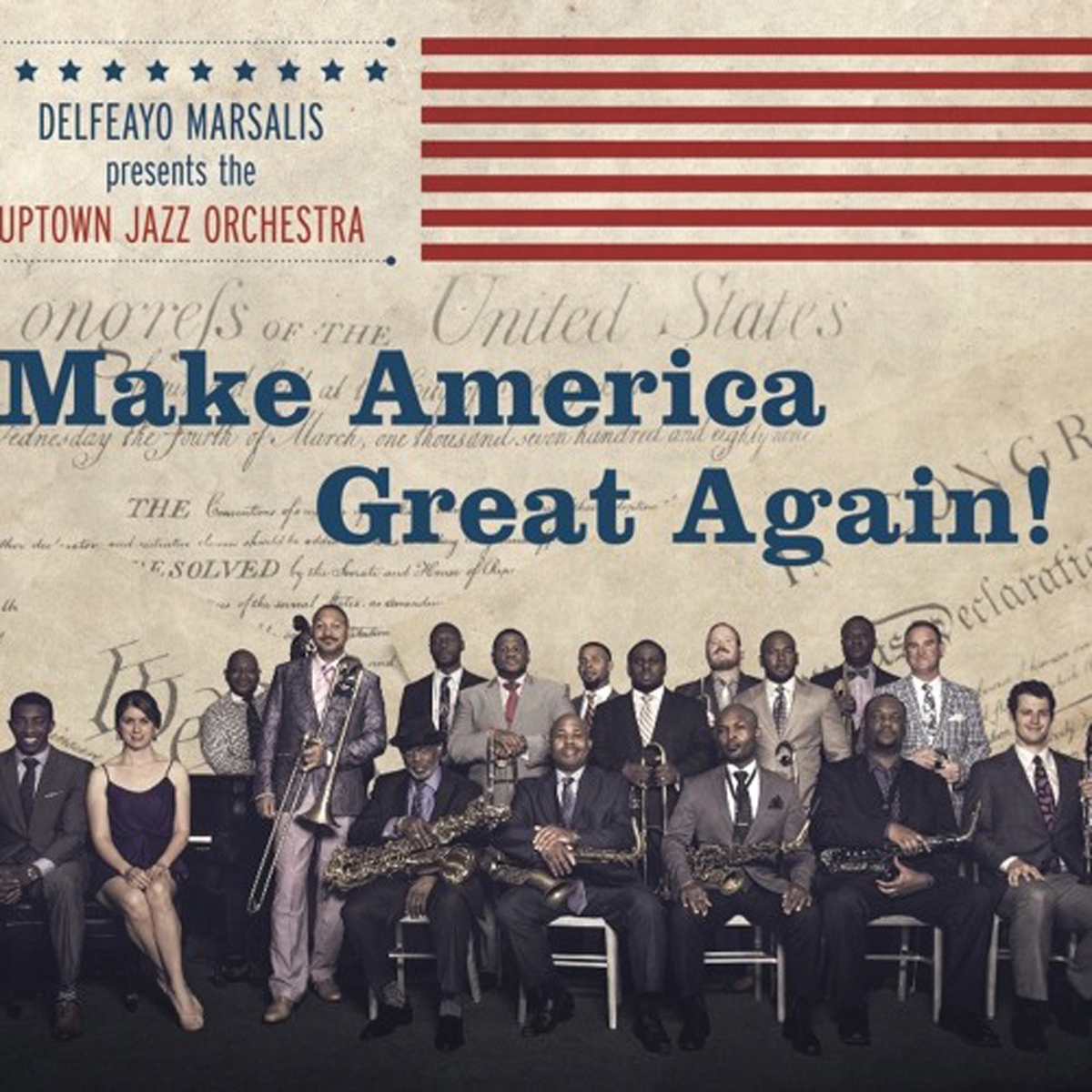 Okay, the title of Delfeayo Marsalis and the Uptown Jazz Orchestra’s debut CD, Make America Great Again!, certainly deserves a “Say what??” response. Naturally, the trombonist/bandleader and composer didn’t choose the campaign slogan of a particularly controversial candidate to bolster the man’s prospects for election. On the contrary, Marsalis’ essay of the same name, which is delivered in the rich voice of actor Wendell Pierce, speaks to the contradictions in the “pragmatic proposition.” It’s all accomplished backed by the swinging big band with the upbeat voices of the Uptown Theatre Choir. The album also surprisingly opens with a soft, drumless version of “Star Spangled Banner.” Okay, another “Say what?” might be in order.