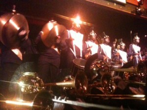 One more thing: the most enjoyable moment of Saturday evening’s auction was being smack-dab in the middle of the Roots of Music band. In full marching band regalia, about a hundred Roots of Music kids marched into Generations Hall and played several tunes with Derrick Tabb conducting. I was sitting on a barstool Joseph had pulled up near the front of the stage, and I became surrounded by kids, drums, trombones and baritones. I had to back way up so that the slides wouldn’t hit me. The sound was incredible; the band was great; the kids were disciplined and also looked like they were having a great time. When’s the last time you got to experience a New Orleans marching band from the inside out?