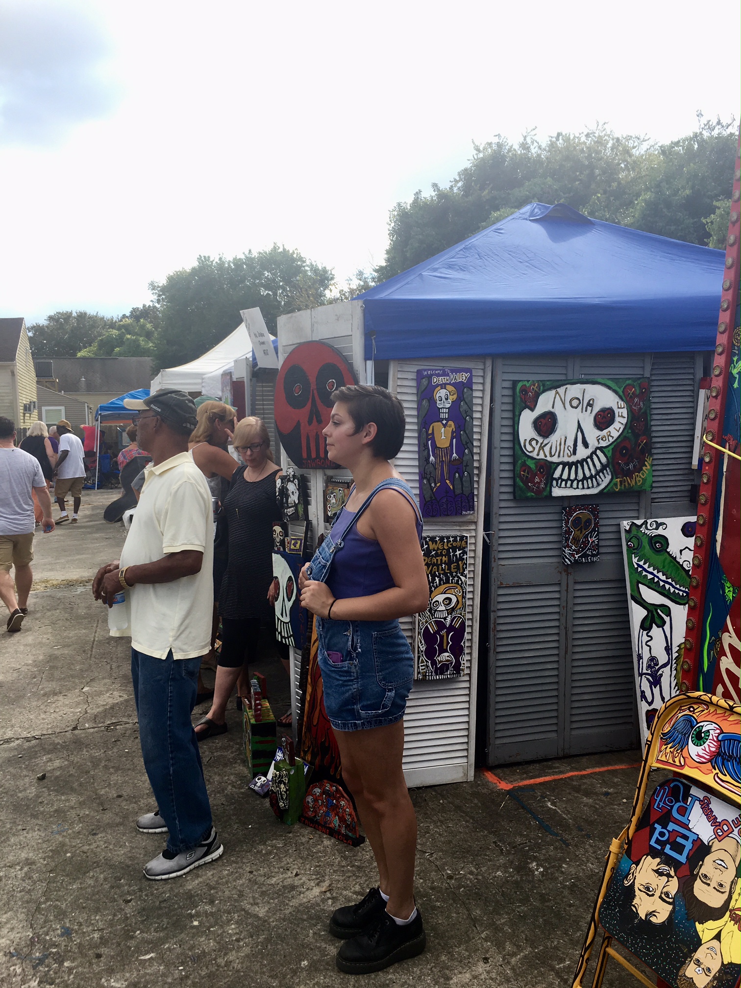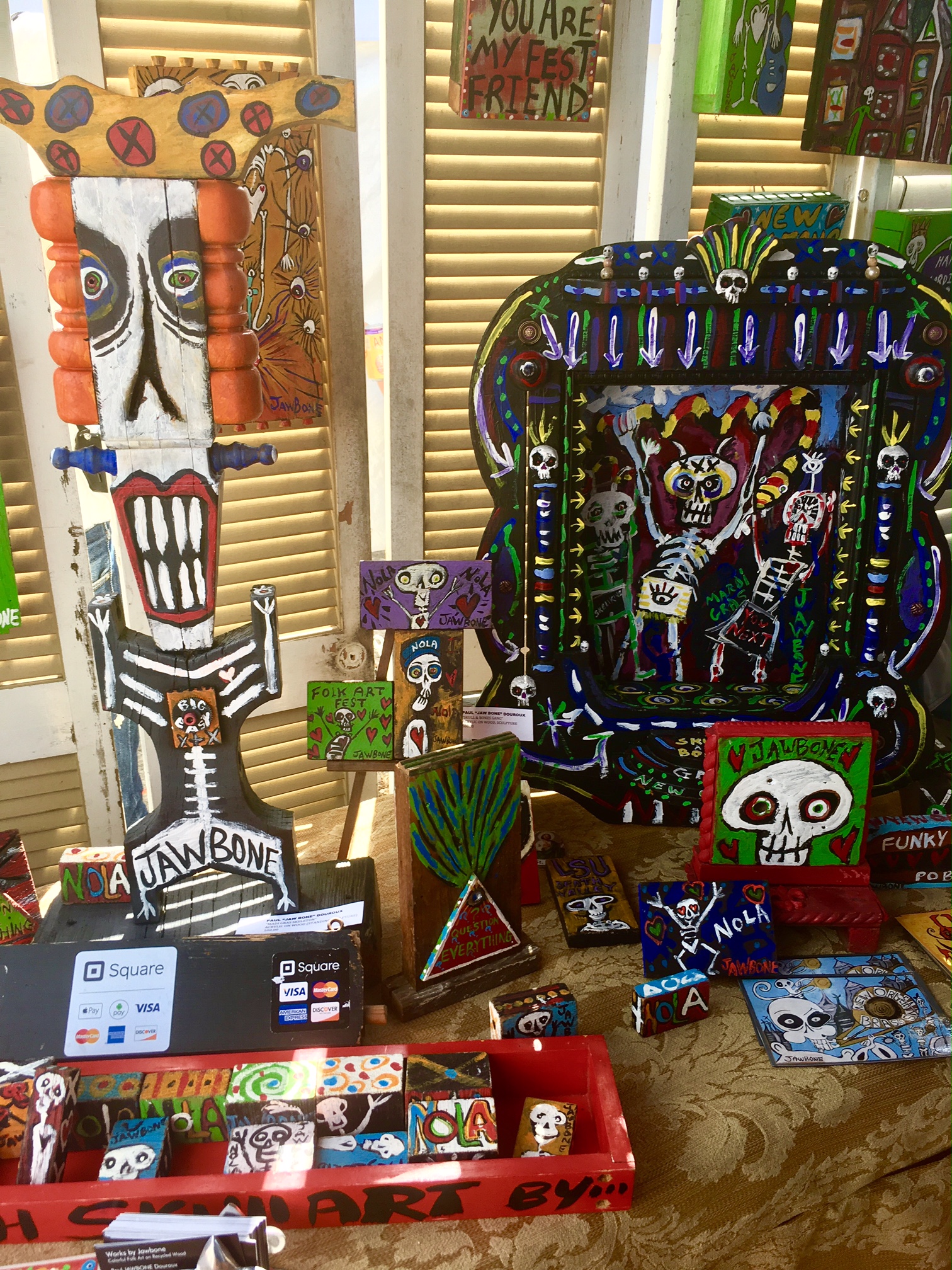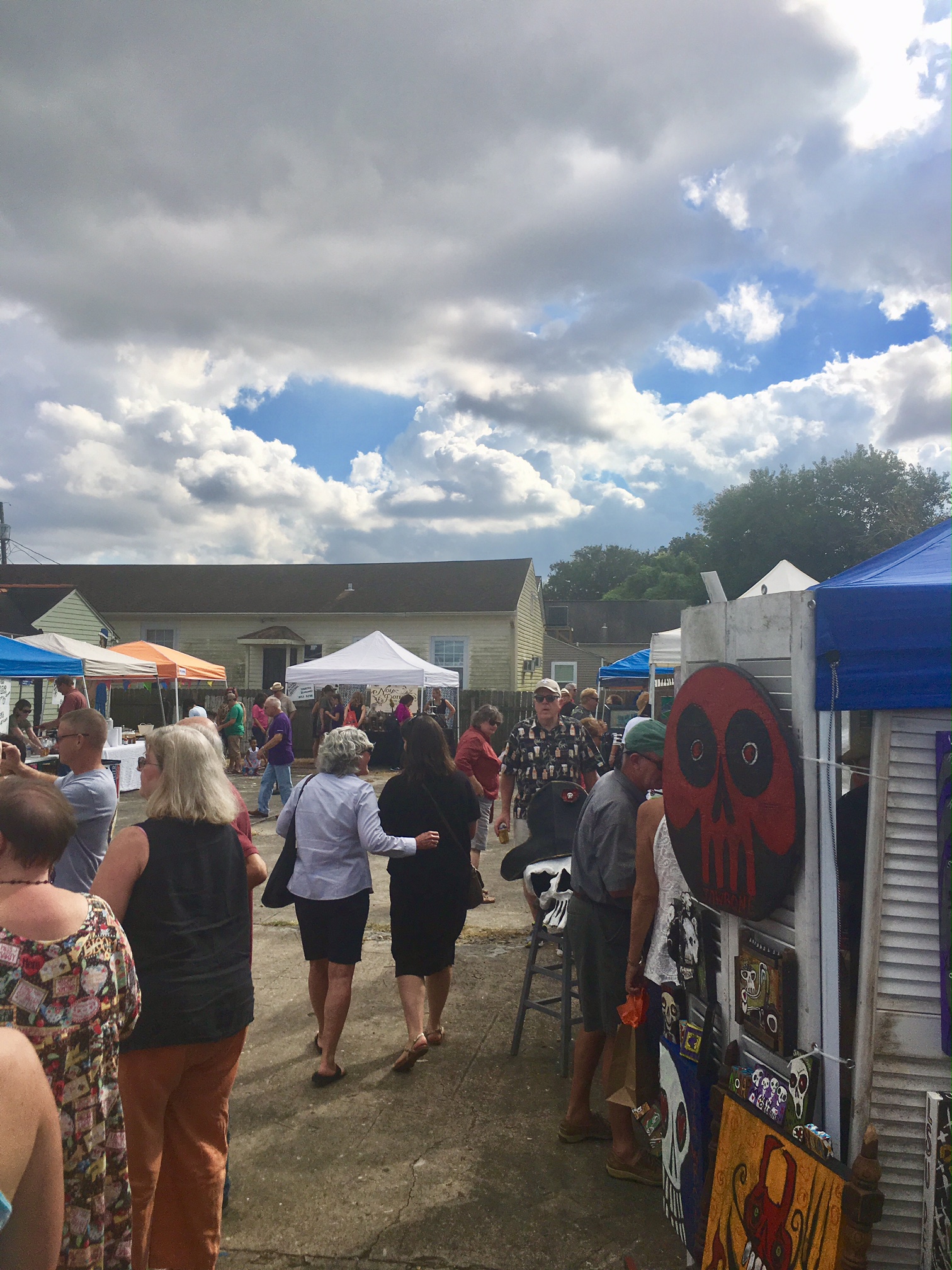 While still a part of New Orleans proper, crossing the bridge into Algiers feels like getting away to somewhere else. Traffic ceases, the constant mill of people halts and the calm of getting out of the city is suddenly present. The Algiers Folk Art Festival had that same impression. Held on the grounds of the Algiers Folk Art Zone and Blues Museum, it had the coziness of a party thrown in a backyard. Children wandered around with face paint and sno-balls, and a barbecue in the corner made charcoal smoked air. Tents set up on the grounds were filled with traditional New Orleans art. This included sculpture, painting, mixed media arts, jewelry, ceramics and quilts done by artists Charles Gillam, Sr., Paul “Jawbone” Douroux, Maggie McEleney, Dr. Bob, Cely Pedescleaux, Jennifer Blanchard, Dylan Bell, Destiny Fields, Dianne Baquet, Chris Grisaffe, Jennifer Cart, Nate Scott, Ransom McCormick, Jr., and Robin Fournet. After perusing all the art the festival had to offer, many visitors stayed to dance along to the performances from local New Orleans musical acts such as the Brian Murray Traditional Jazz Band, Marcel Anton Trio, Paul Sanchez, Benny Grunch and the Bunch, and Confetti Park Players. With so much to offer, we have the Algiers Folk Art Zone to thank for a lovely November afternoon.