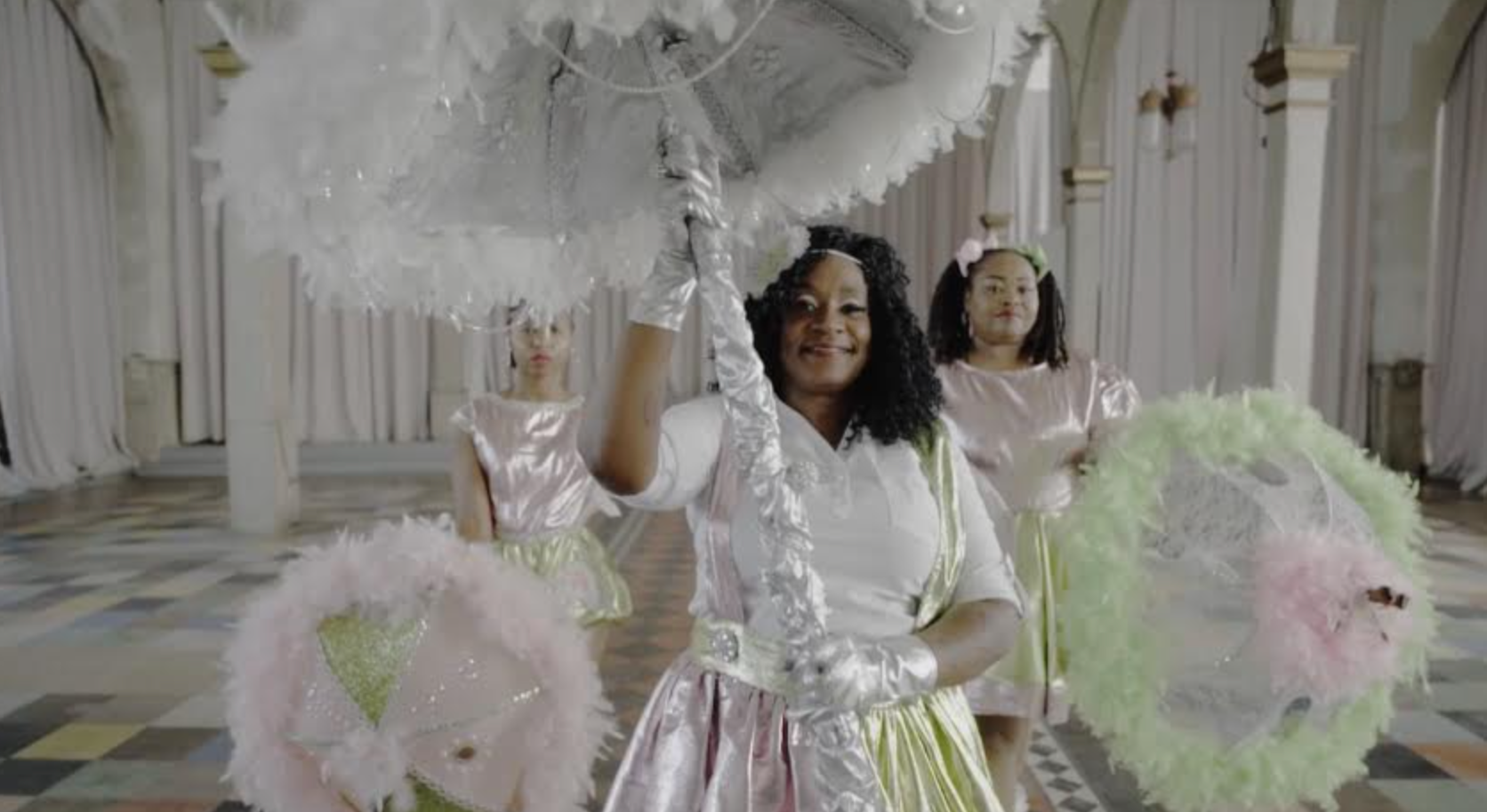 An aerial shot brings the viewer into Congo Square where a traditional Sunday dance and drumming ceremony is underway. Soon the strong voices of Cinnamon Black (Voodoo Baby Doll Queen), Shannon Paxton (Queen Chocolate), and Kadrell Batiste (Renegade Rebel Baby Doll) are integrated into the scene, each of them celebrating why they choose to be Baby Dolls. “I am a queen every day when I put this dress on!” says Alana Harris of the Creole Belles. “I mask because it gives me energy, it gives me life. You are like a diva in your community.”