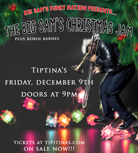 Big Sam’s Funky Nation will host their annual Christmas Jam at Tipitina’s this Friday, December 9. The New Orleans funk rock outfit will be supported by singer Robin Barnes, who is scheduled to open the show.