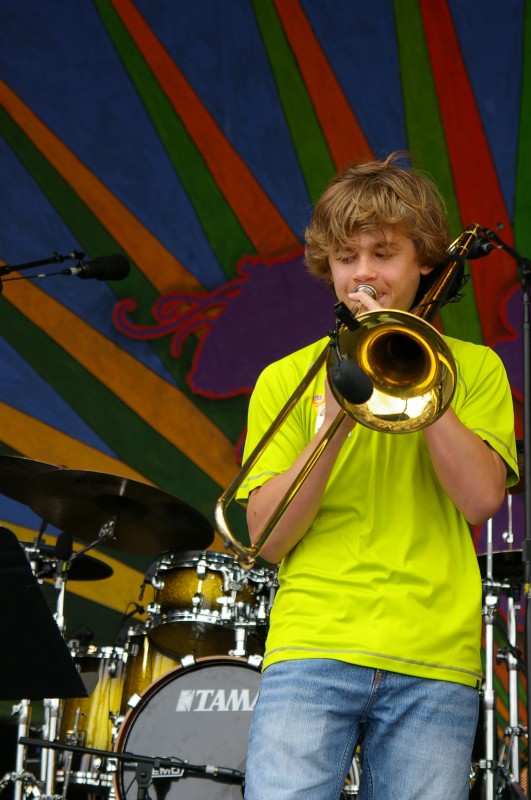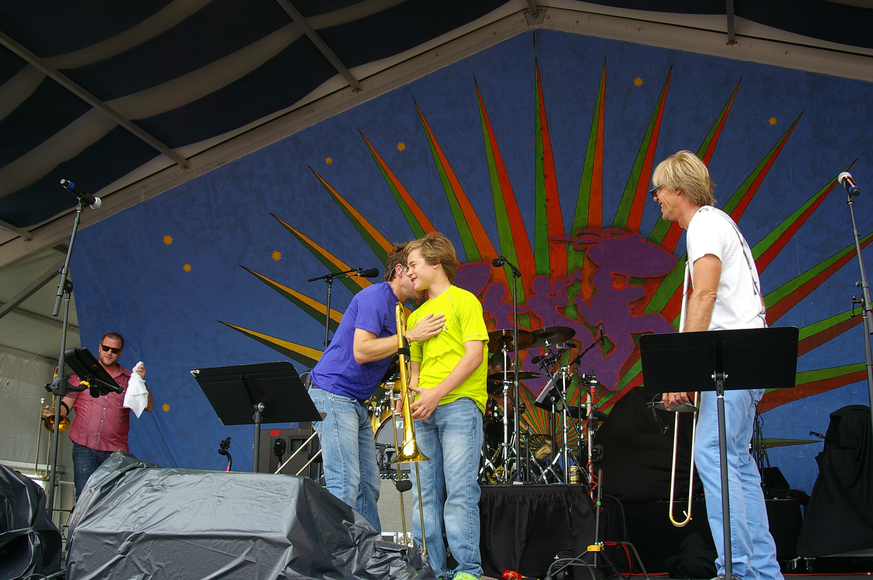 Bonerama’s Mark Mullins carried on this tradition during the band’s set on the Samsung Galaxy stage at Jazz Fest 2014 by bringing his oldest son Michael Mullins on stage to play with the band.
