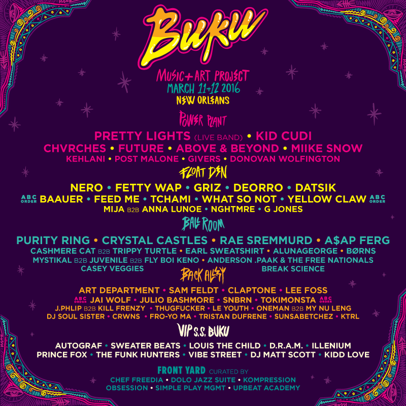 The Buku Music + Art Project has finalized its lineup with a few artists additions. The popular, electronic music-centric festival will now feature electro-pop duo Purity Ring, house producer Deorro, hip-hop act Rae Sremmand, bass producer Datsik and live electronic duo Break Science, among others.