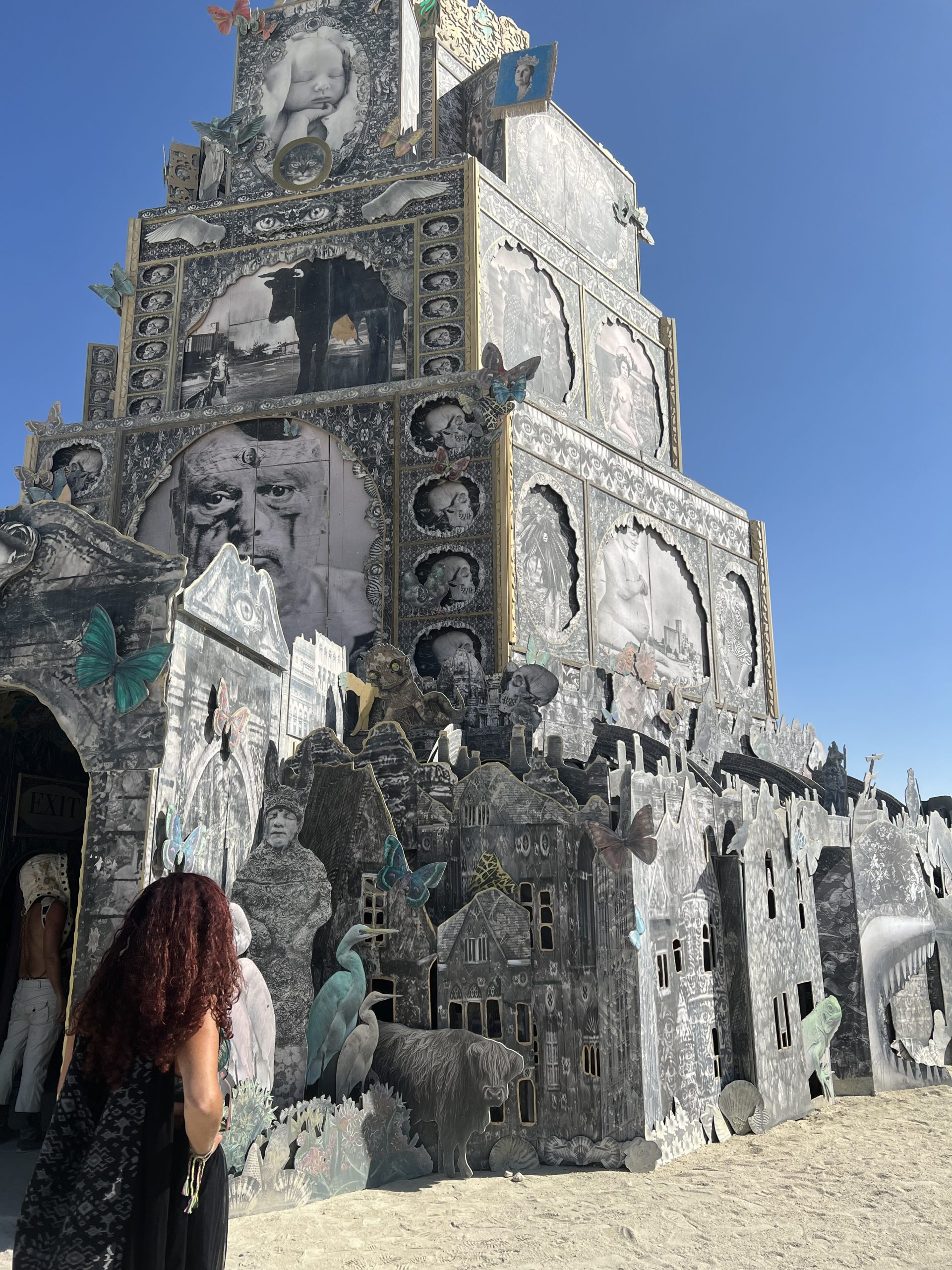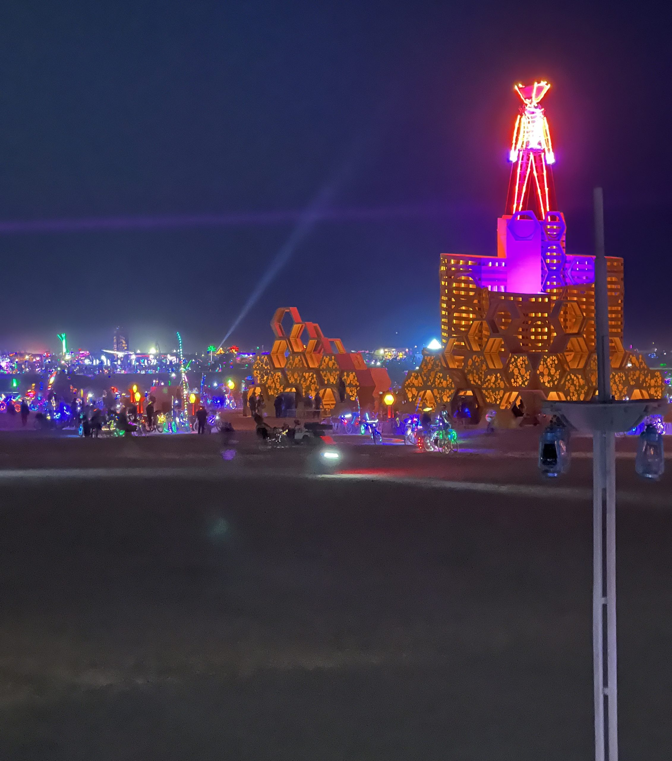 There are well over 300 works of art on the playa. From large temples to medium-sized miniature cities, you could walk through, too tiny little artworks you can hold in your hand on the edge of deep playa. The art is what I personally come for, beautiful, amazing, tearjerking, hilarious, thought-provoking, pieces of sculpture done in every medium against a flat, thought-provoking, ominous desert-like floor.