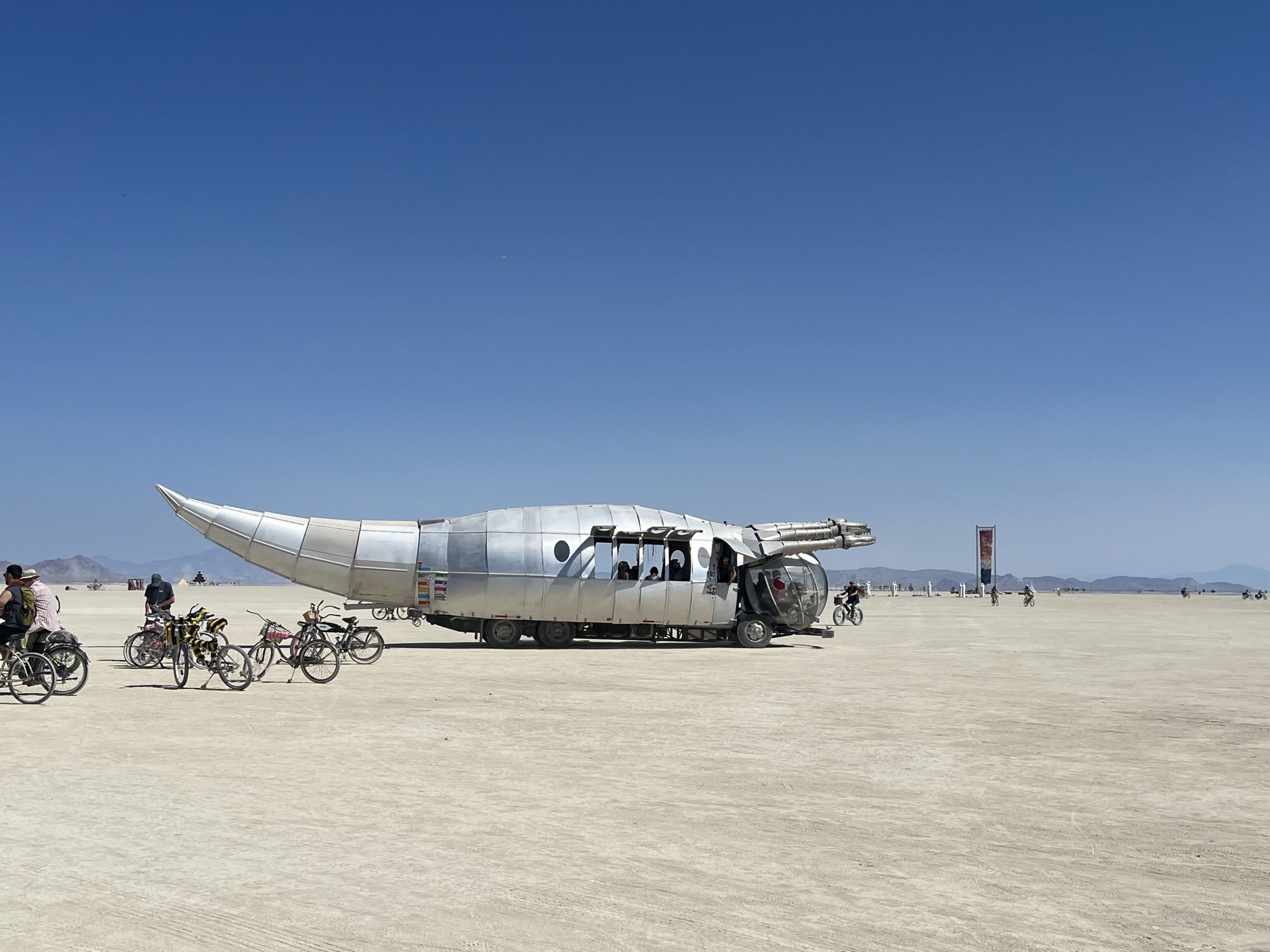 There are hospitals, fire stations and a “City Hall.” It’s a full-service community that has been studied by city planners and it’s functionally excellent. There are no cars. How do you get around? Bicycle or Mutant Vehicle a.k.a. Art Car. In order to ride around in an Art Car you have to pass a series of inspections through the Black Rock City DMV.