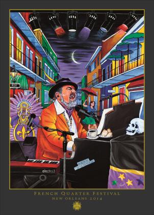 The 2014 French Quarter Festival poster featuring Dr. John is on sale now on OffBeat.com. The 20″x28″ poster was created by artist Varion Laurent, a lifelong resident of New Orleans.