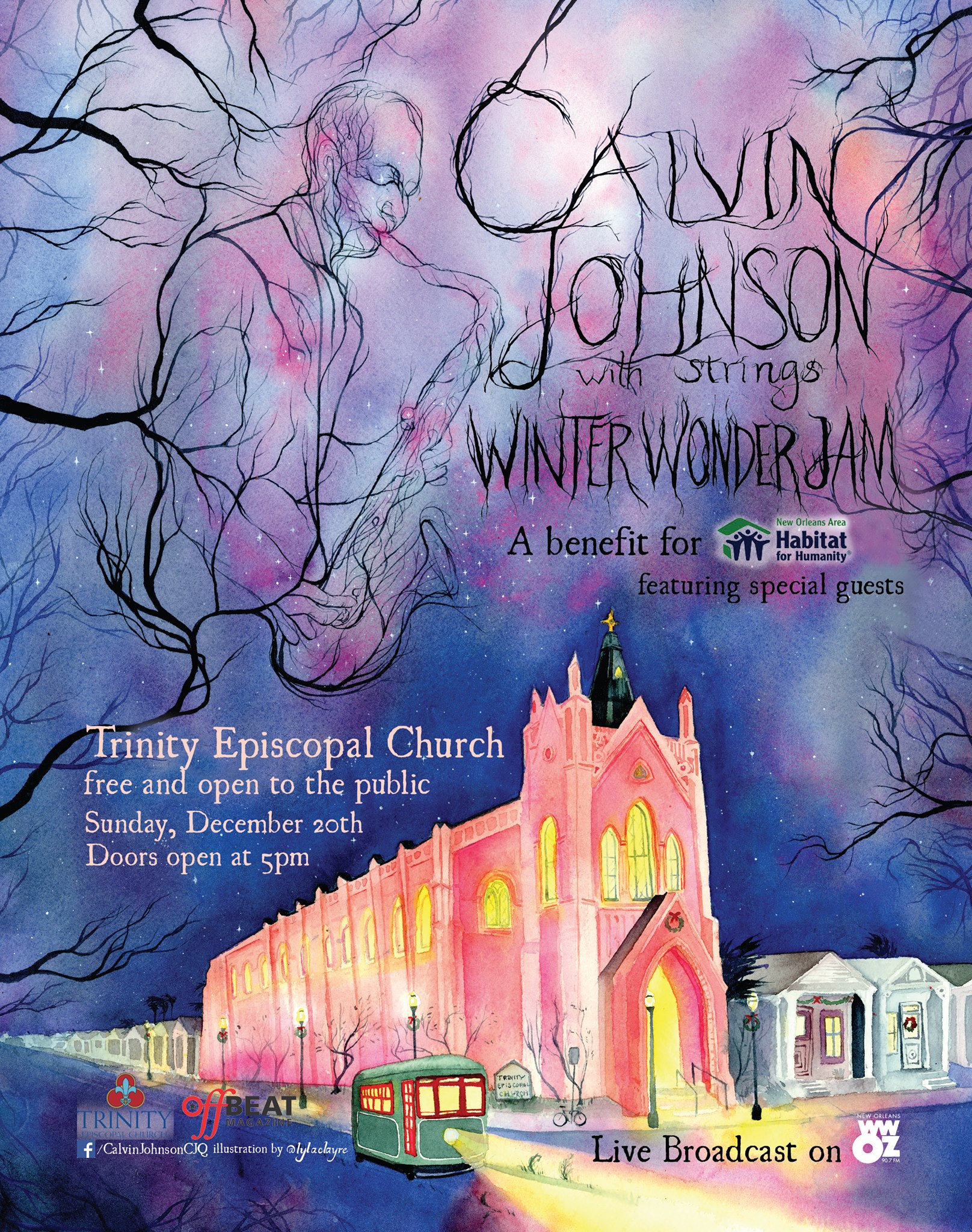 “What will set this show apart is that this entire concert is a thank you,” says Johnson. “A thank you to Habitat for their intangible efforts of making homeowners, to Trinity for continuing to be a beacon of the arts in the community, to WWOZ for just being an amazing truly homegrown New Orleans pillar of culture and a thank you to my great city and everyone in it. That’s what makes this show so special. My gratitude drips from my pen and to these string arrangements for all to hear.”