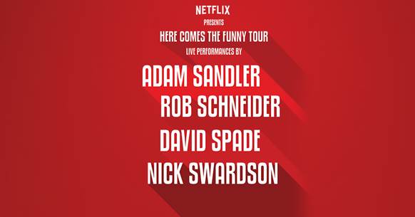 Here Comes The Funny marks the latest tour from the four comedians, who all teamed up earlier this year for The Do-Over Tour in support of Sandler and Spade’s Netflix original movie, The Do-Over. Their upcoming outing appears to be a follow up to the May outing, a run of dates that saw the quartet take the stage in seven select cities.