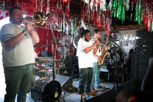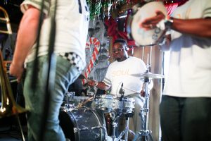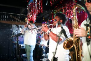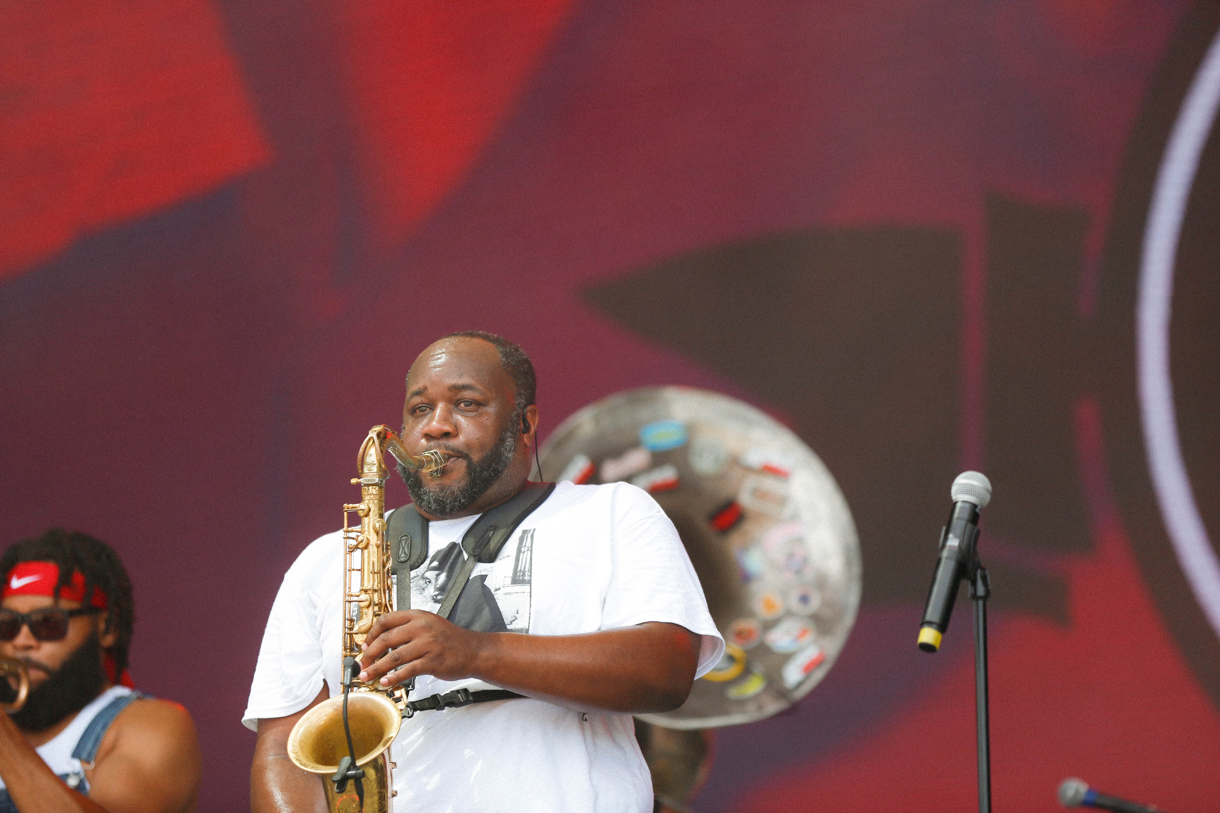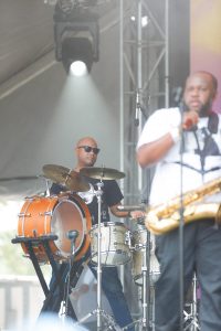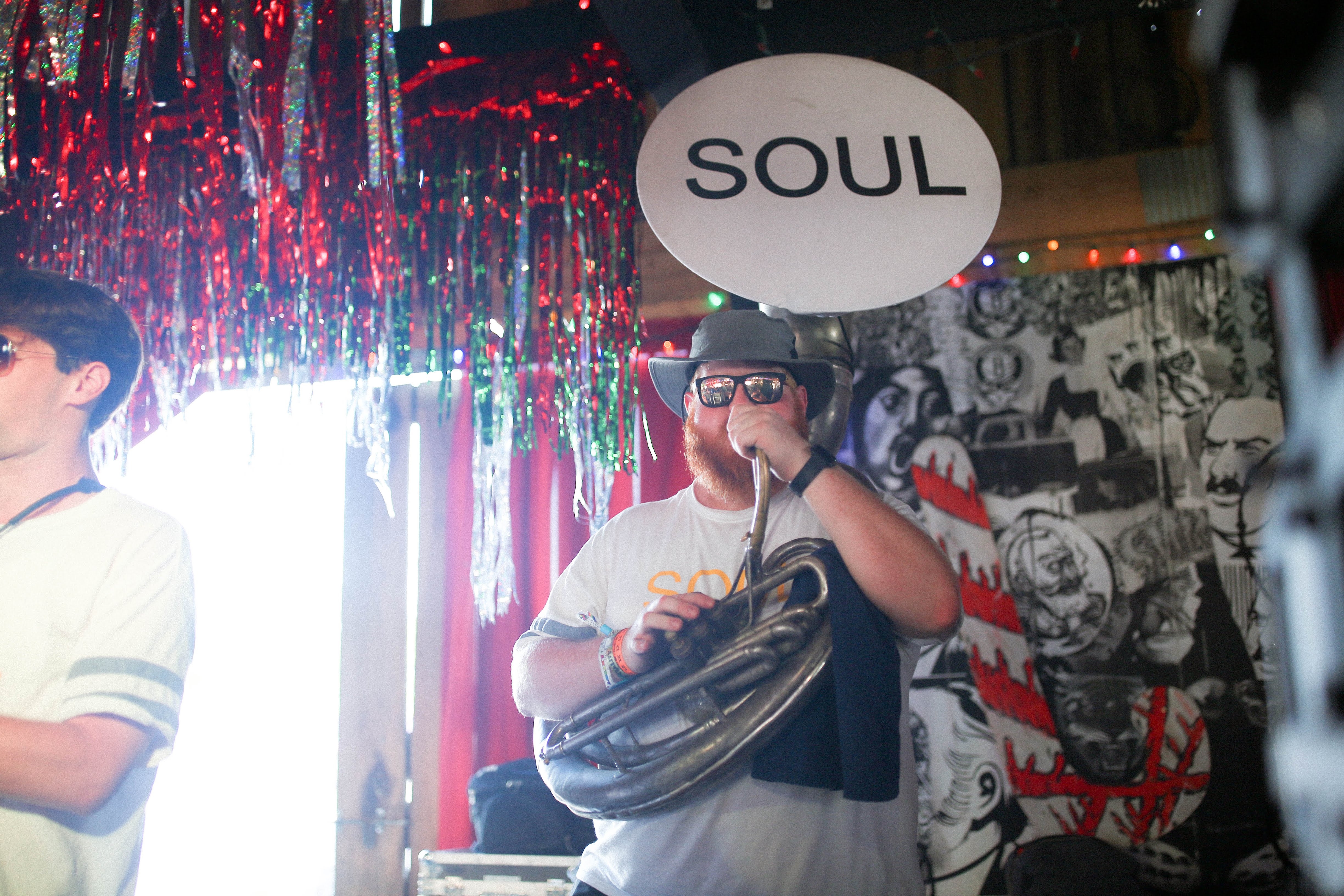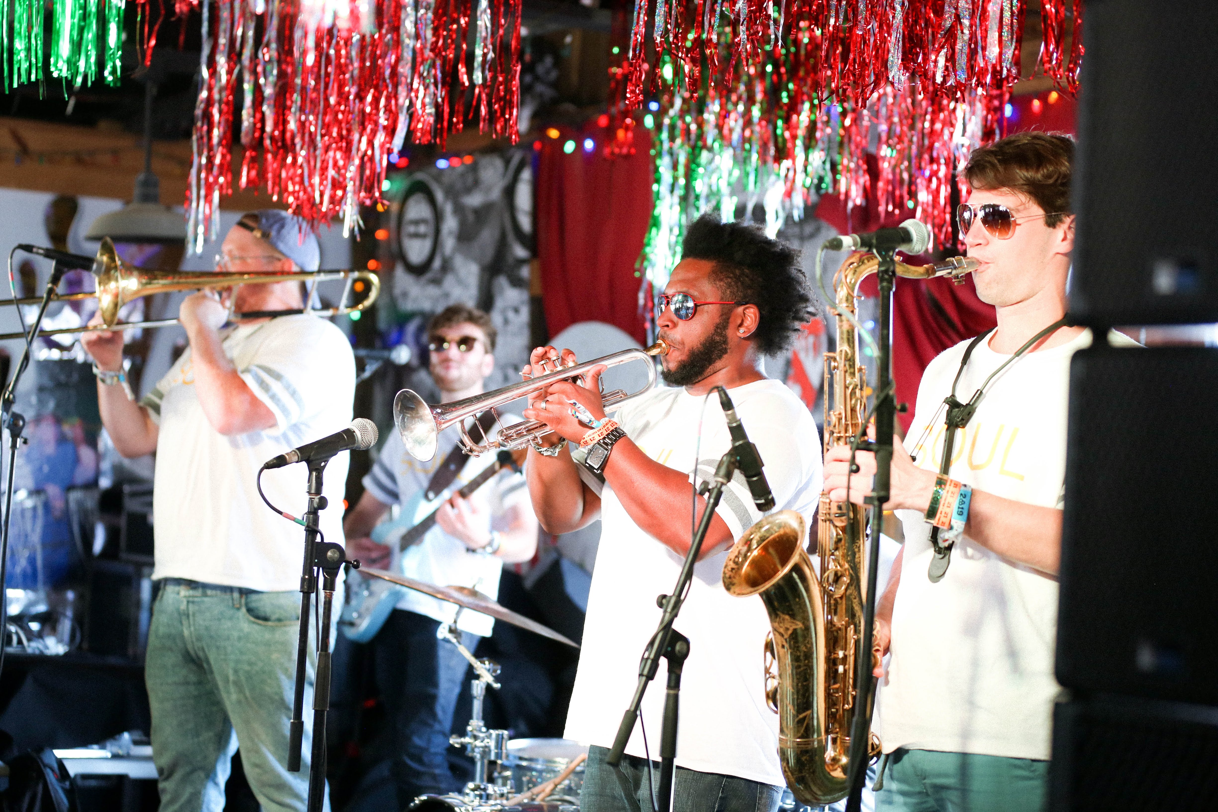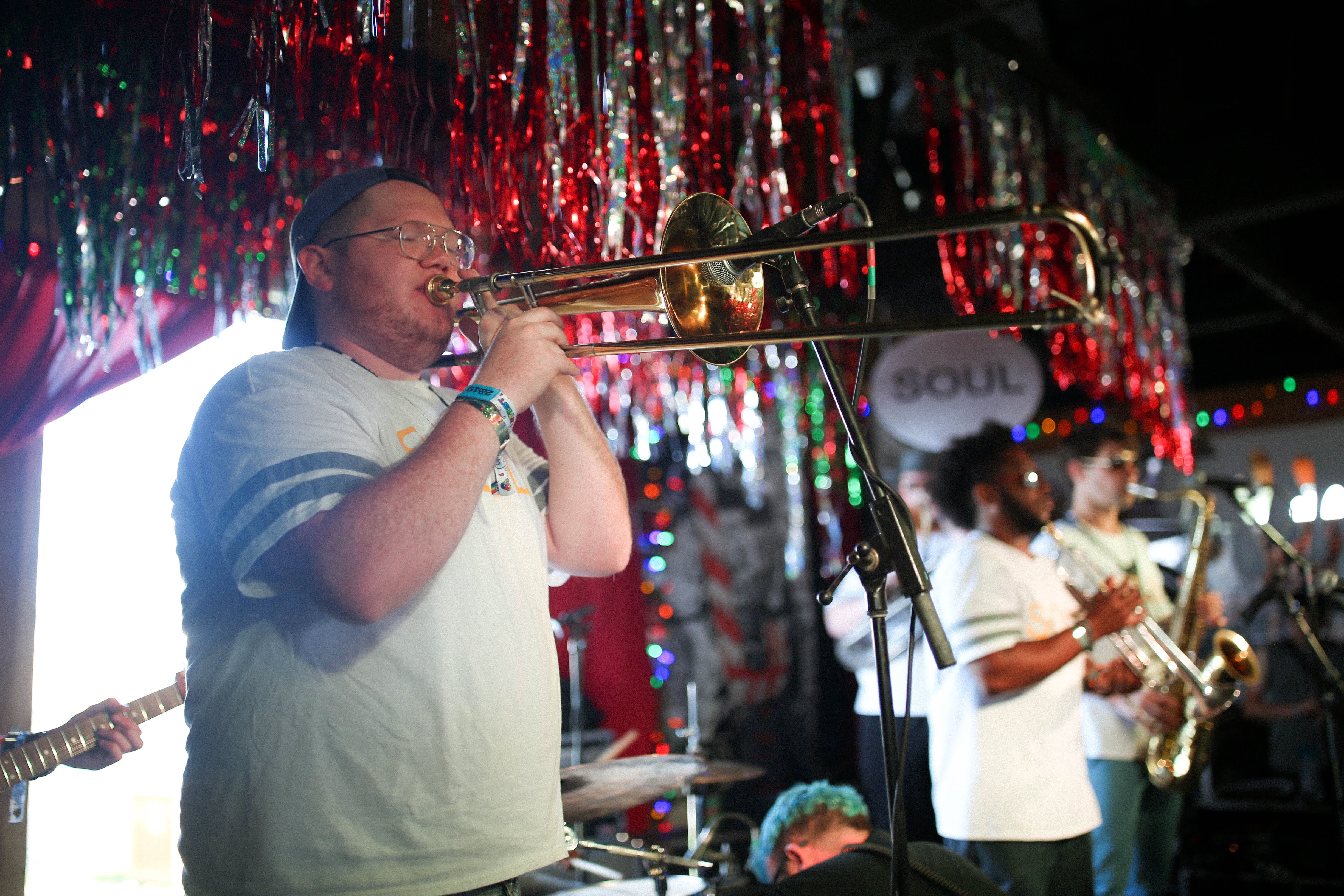 The SOUL Brass Band, the New Orleans outfit anchored by drummer/vocalist Derrick Freeman and saxophonist James Martin, came to shake shit up. The group played material from its recent release, Levels, including the title track and “Open Your Eyes.”