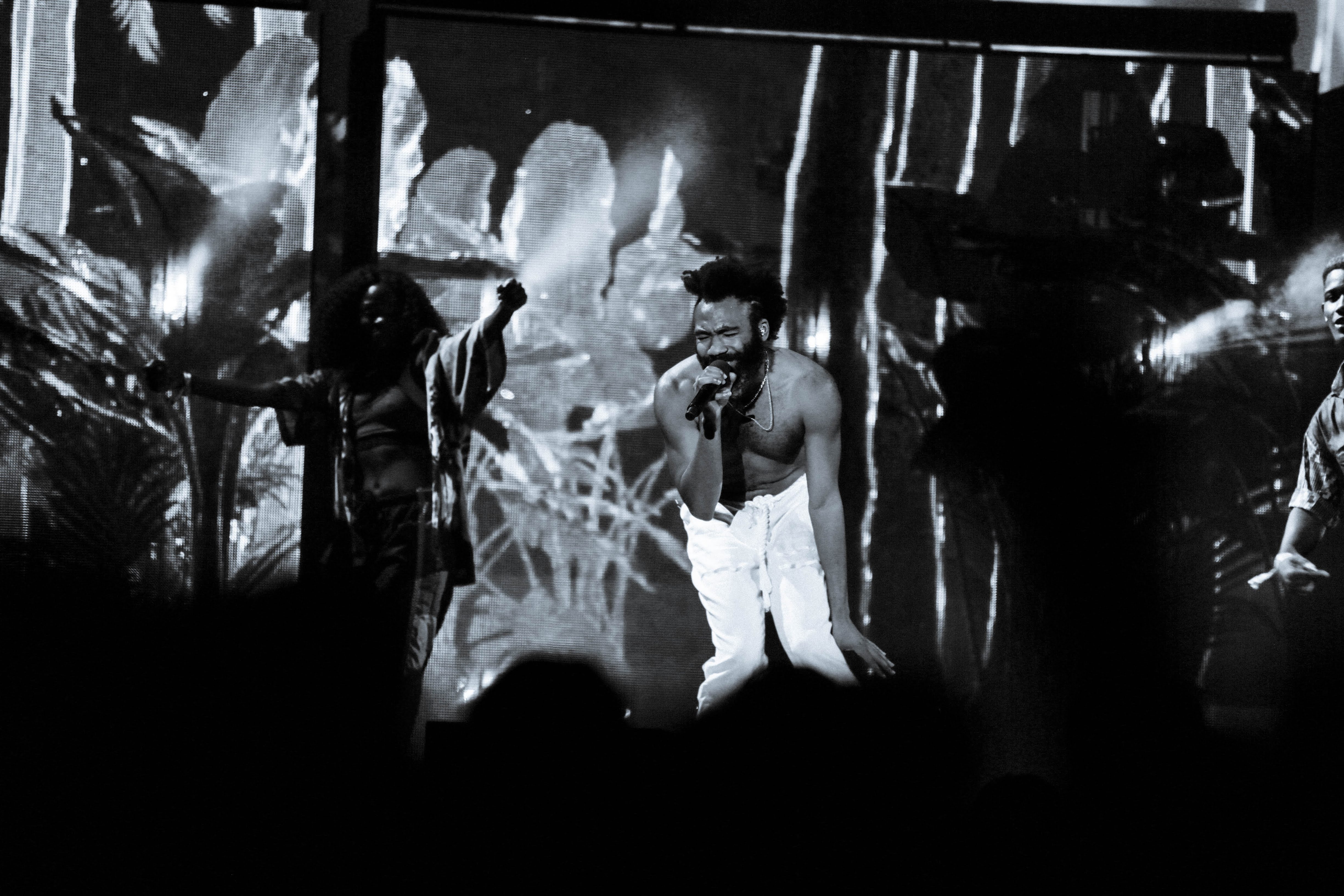 Childish Gambino may have gotten his stage name from a random online Wu-Tang name generator, but everything about his artistry is deliberate. He weaved in between the genres that encompass his discography—soul, funk, hip-hop, some shit that doesn’t fit into any extant genre box—while singing “Algorythm,” rapping “Sweatpants” and dancing in unbridled joy to “Feels Like Summer.” During the latter, he eventually ended up flat on the ground, writhing shirtless on the stage. His hair was also deliberate. He wore it half-Afro, half-braided, intentionally highlighting his Blackness.