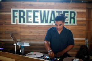 After a night of requisite rest and a run to Walgreen’s for last-minute ear plugs, we headed out on Friday, June 14 and ambled on the Road to ‘Roo. Before heading out to hear some New Orleans music from some of our favorite local characters, we checked in with FREEWATER, the creative directors from the city who were tasked with curating their very own camping plaza, which they dubbed “Bayou Libre.” There, the crew comprised of videographers, photographers, performers, artists and more, got things set up in between rest stops at their teal green tour bus.
