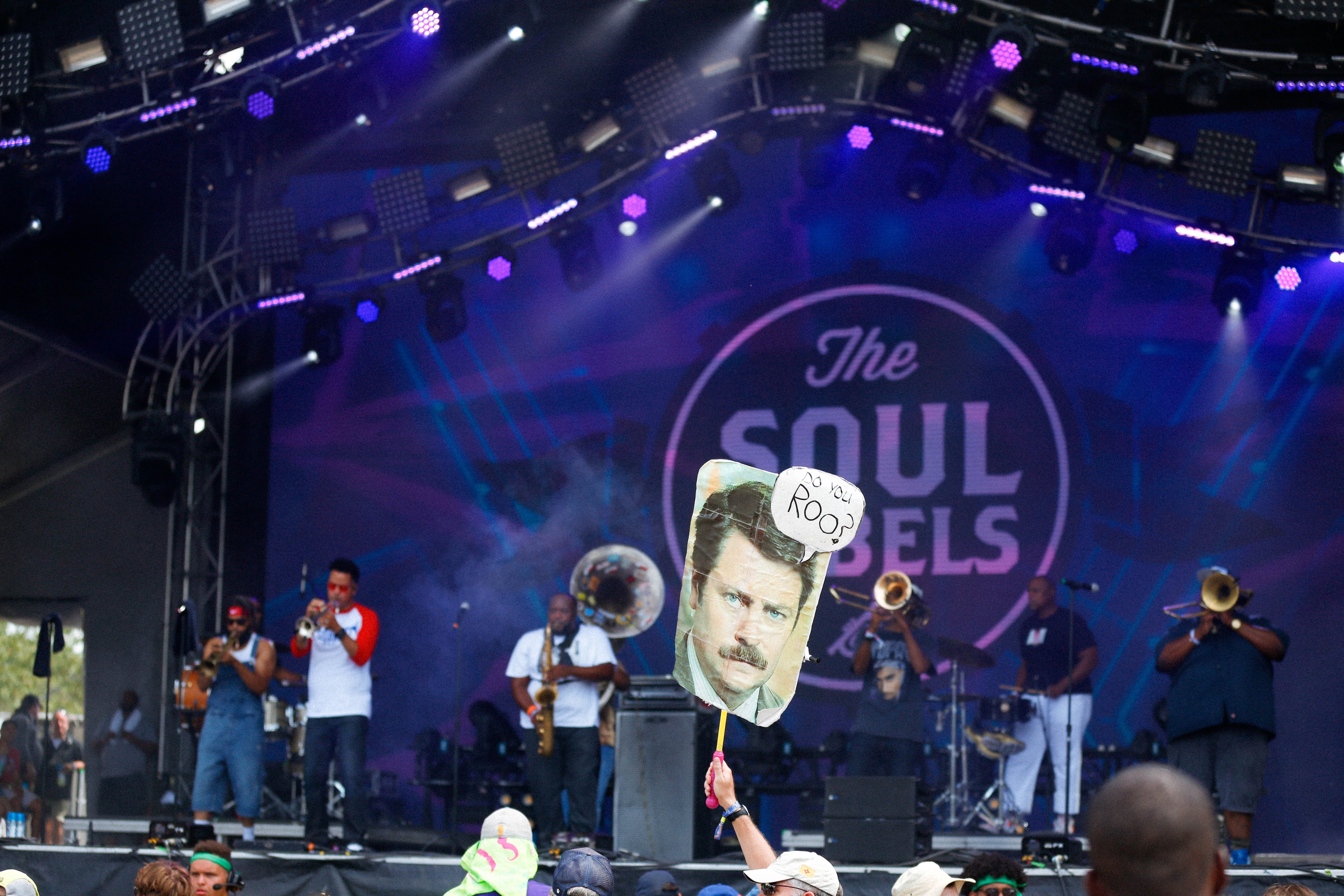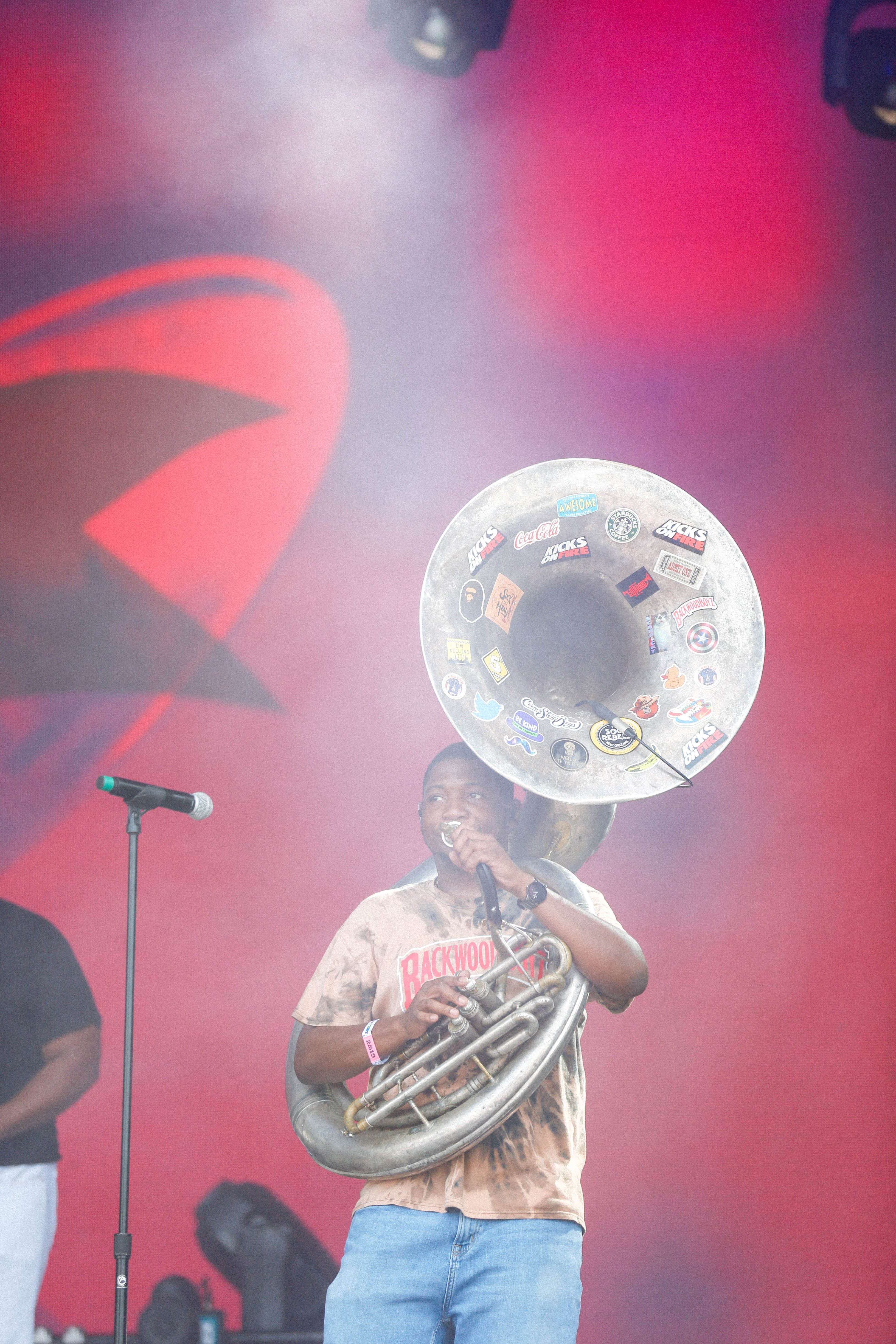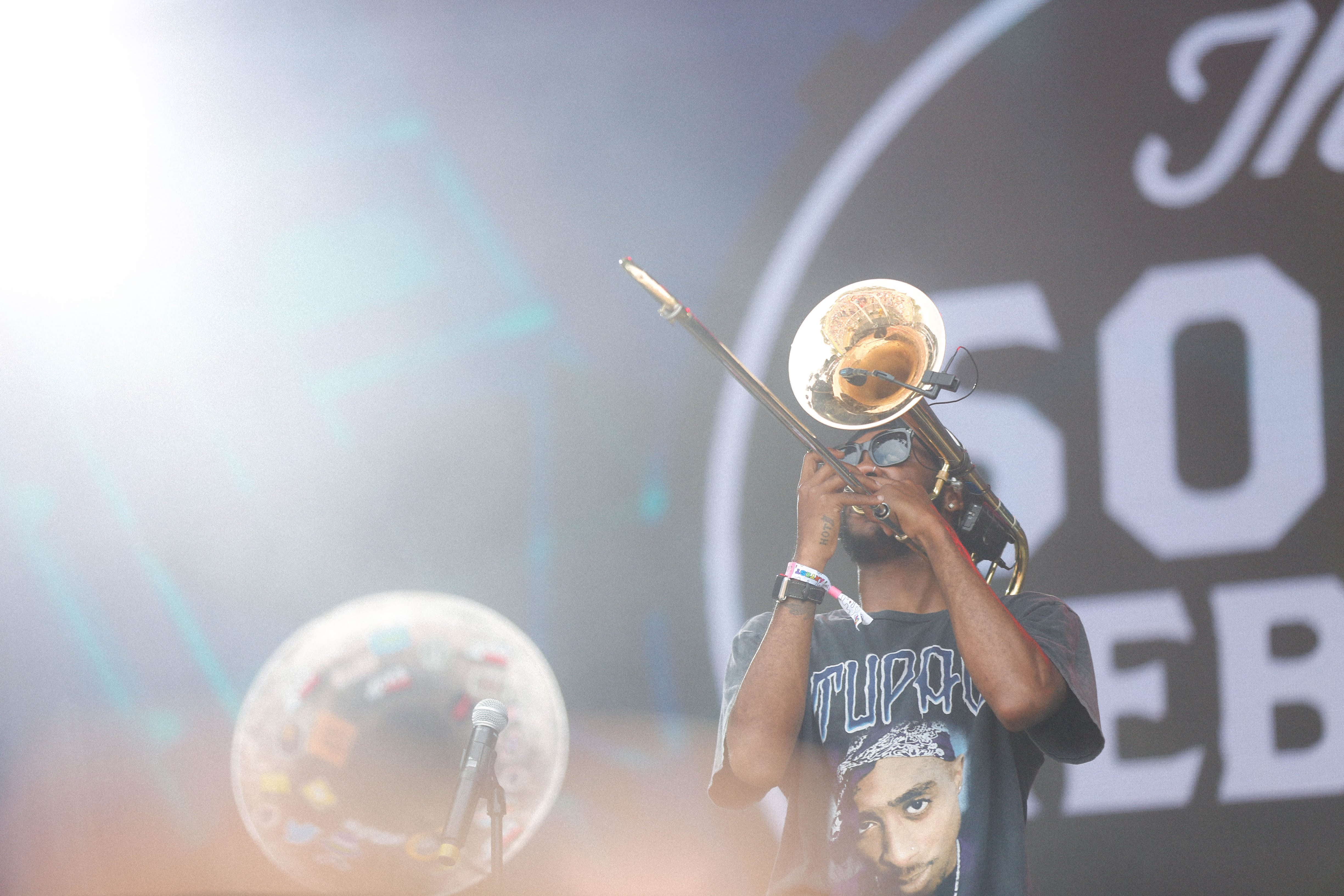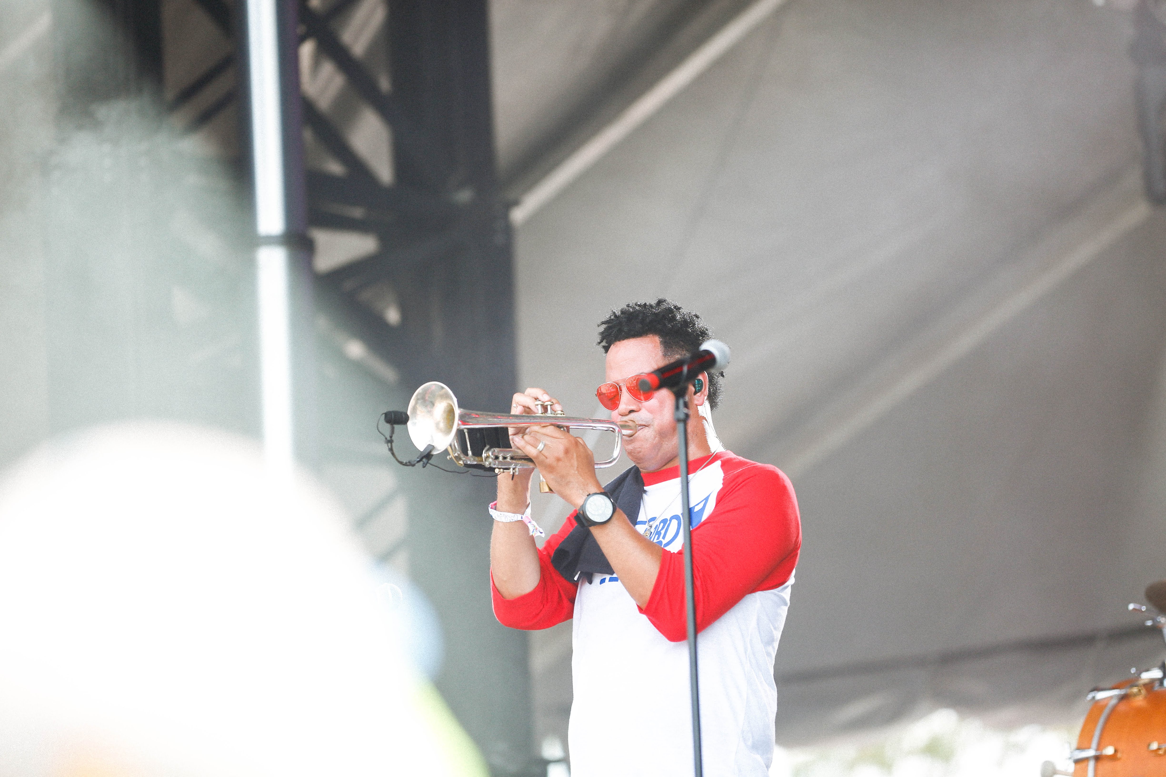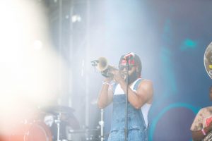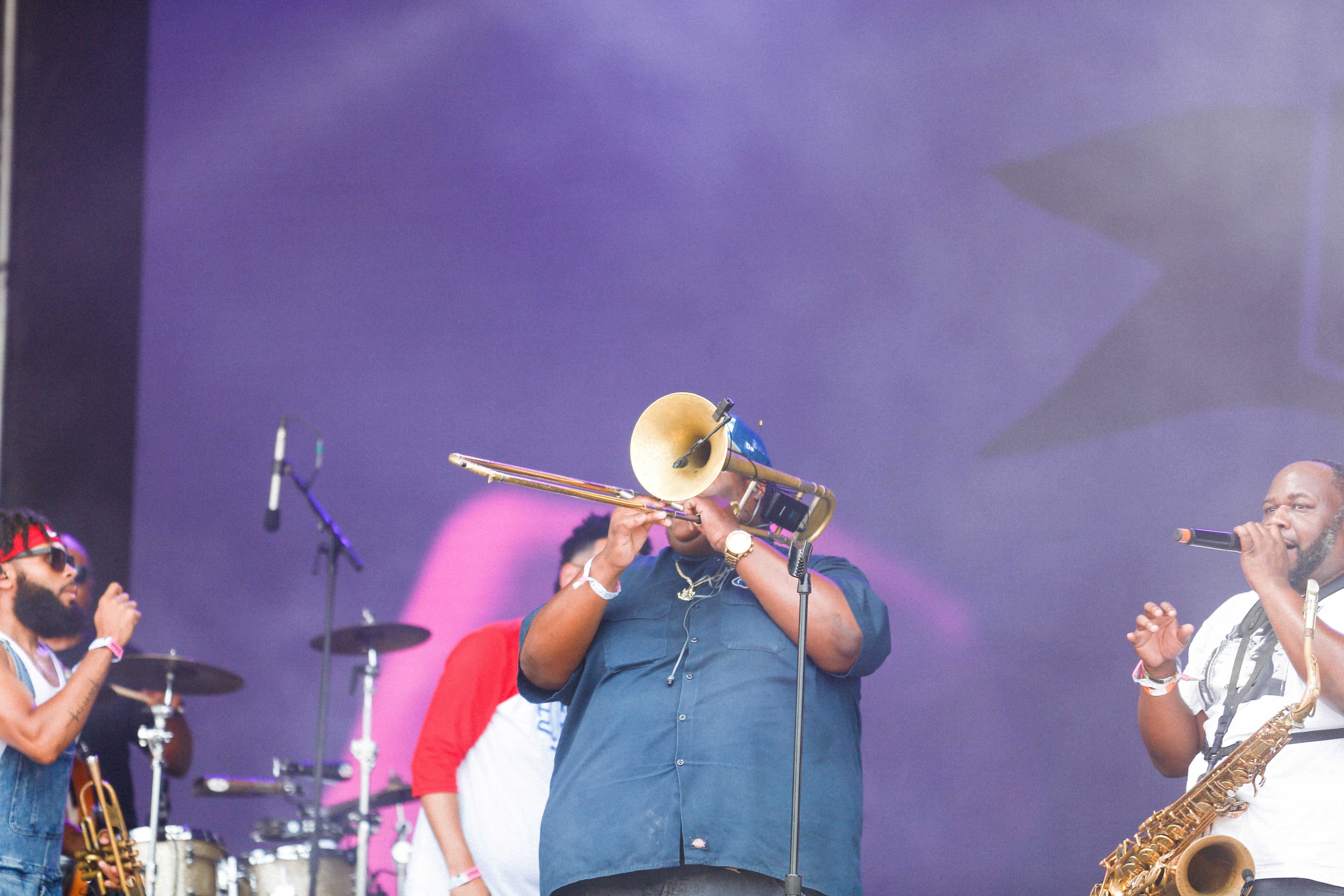 Our weekend ended with The Soul Rebels, who performed on the Which Stage in the early afternoon sun. Warmed up by an upbeat, positively effusive performance from Boston, Massachusetts band Ripe, the eight-piece band from New Orleans took the stage to perform a mix of long-standing set mainstays like “Rebel Rock” and the hometown anthem “504,” plus new material ostensibly from the band’s forthcoming album, Poetry in Motion. The new material, including a song called “Blow the Horns,” places more focus on singing and MCing. Trumpeter Marcus “Red” Hubbard and trombonist “Big Paul” Robertson sang, while trumpeter Julian Gosin and trombonist Corey “Passport P” Peyton rapped. The band served up renditions of Nas’ “If I Ruled the World” and closed with a newer addition to their cover repertoire, Chance The Rapper’s “No Problems.”