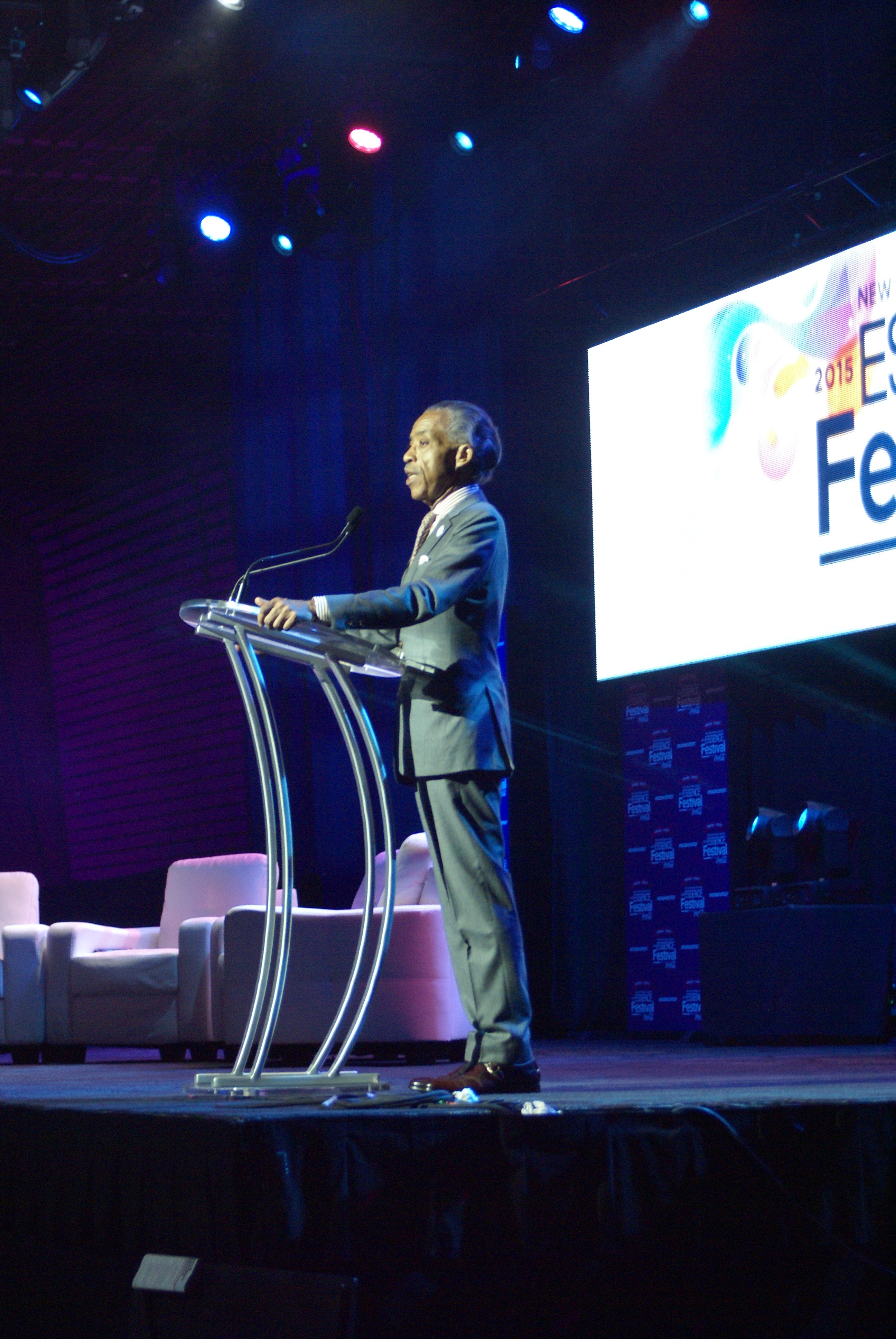 Next up, the Reverend Al Sharpton took the stage, honoring the mission of Essence Fest with the statement that, over the course of African American history, “Our women not only had our back, they’ve been our back.” The short, powerful speech that followed reminded us that we do not live in a post-racial society, we live in the time of Charleston. The quest for equality and justice, Sharpton maintained, is a never-ending process that leaves no room for complacency.