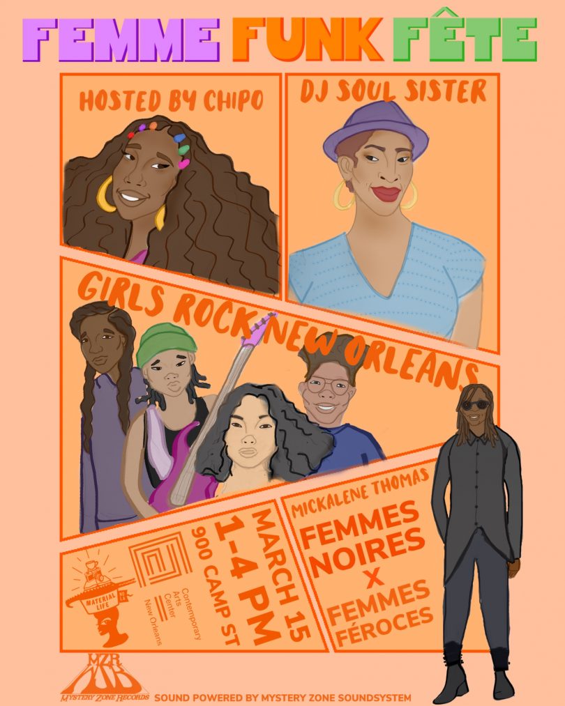 Femme Funk Fête is free and open to the public on March 15 from 1 pm to 4 pm at the CAC New Orleans.