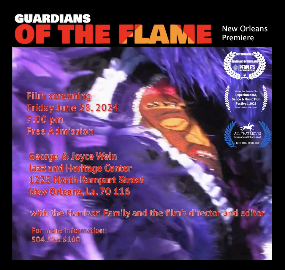 On Friday, June 28, 2024, at 7 p.m., the George and Joyce Wein Jazz & Heritage Center in New Orleans will host the premiere of “Guardians of the Flame,” a documentary directed by Daniel Wolff that delves deep into the heart of New Orleans’ cultural tapestry through the inspiring journey of the Harrison family.