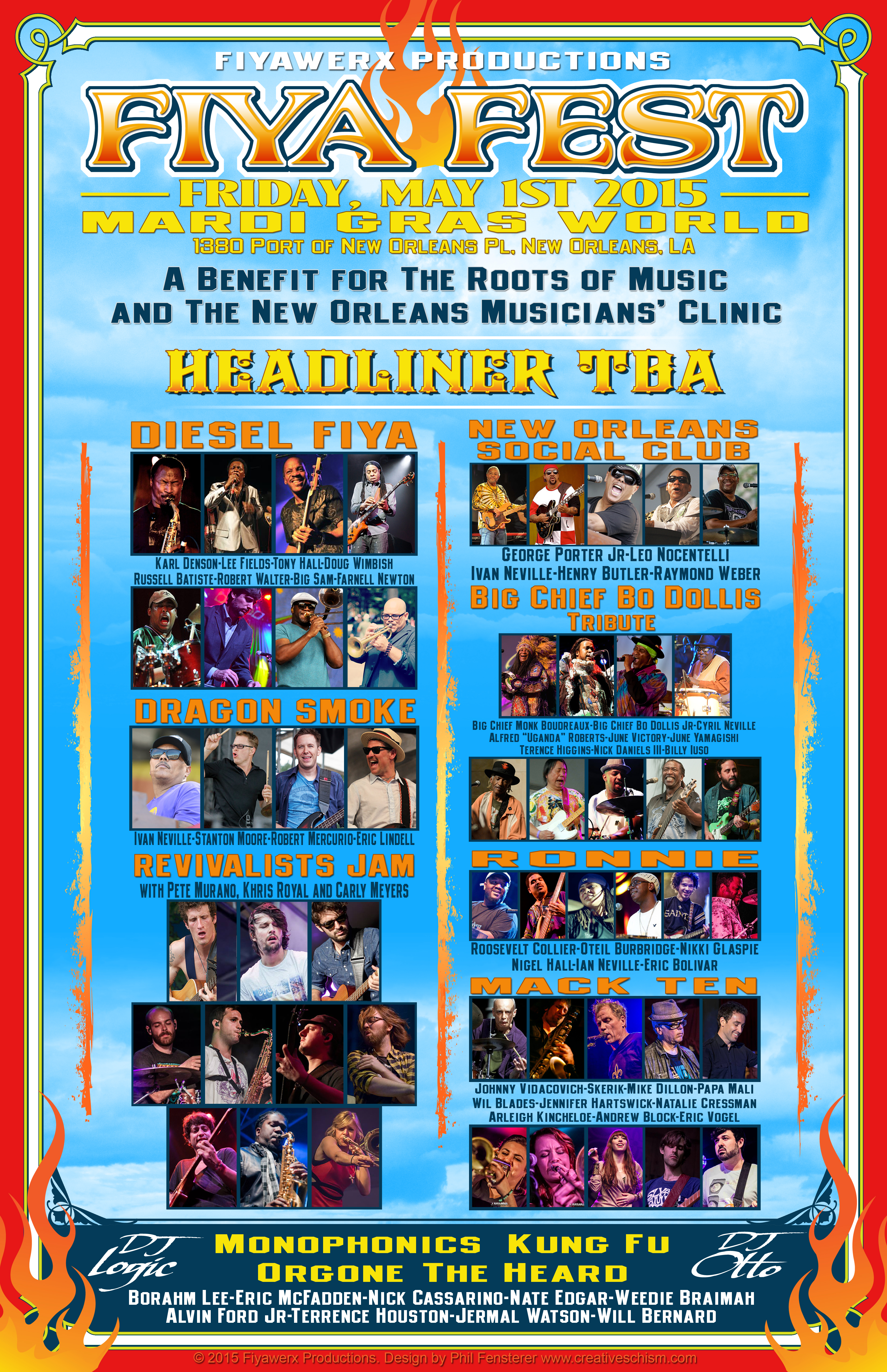 The event benefits the Roots of Music, a non-profit organization that helps and supports music education programs in New Orleans schools, and the New Orleans Clinic, which provides health care and social services to musicians around the city.