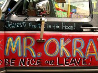 But that didn’t stop him and his truck from going to Jazz Fest. He had it towed to the Fair Grounds, where d.b.a. owner Tom Thayer asked him why he hadn’t seen him around. When Mr. Okra explained his truck was down, Thayer organized an effort to get Mr. Okra’s truck up and running.
