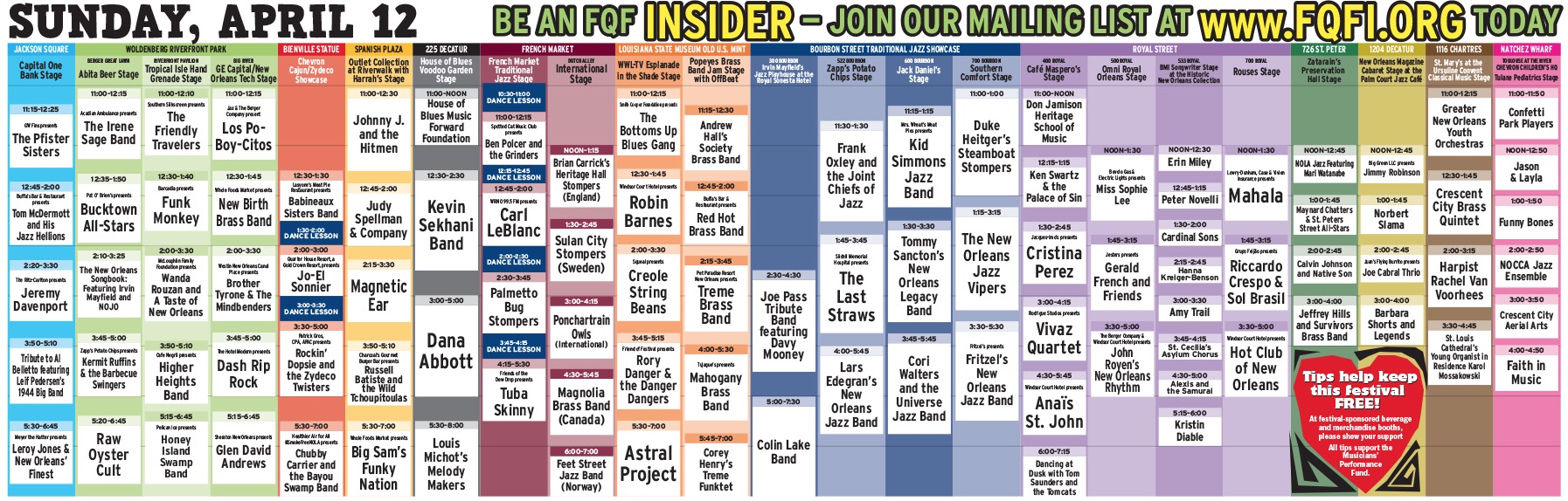 The full daily cube schedule for French Quarter Fest 2015 has been released!