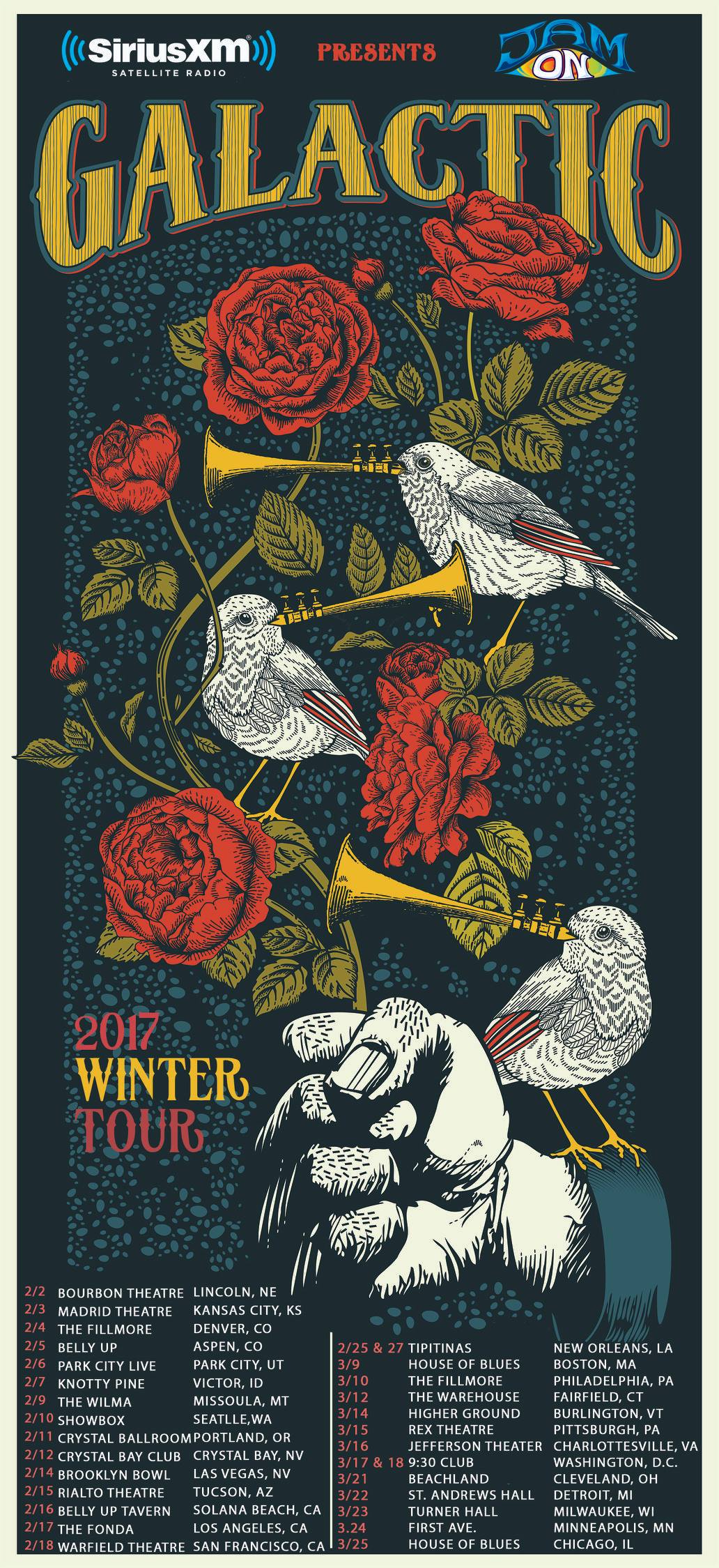 Galactic will hit the road this winter for an extensive tour across much of the United States. The outing will bring the New Orleans’ funk-rock icons through the West Coast, Northeast and parts of the Midwest.