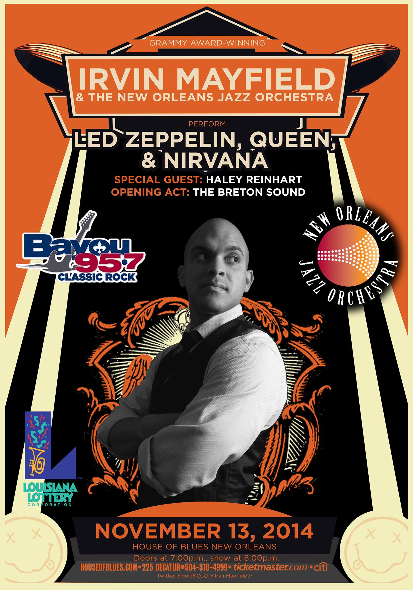 Irvin Mayfield and the New Orleans Jazz Orchestra will be playing a jazz tribute to rock heroes Led Zeppelin, Queen, and Nirvana at the House of Blues on Thursday, November 13.