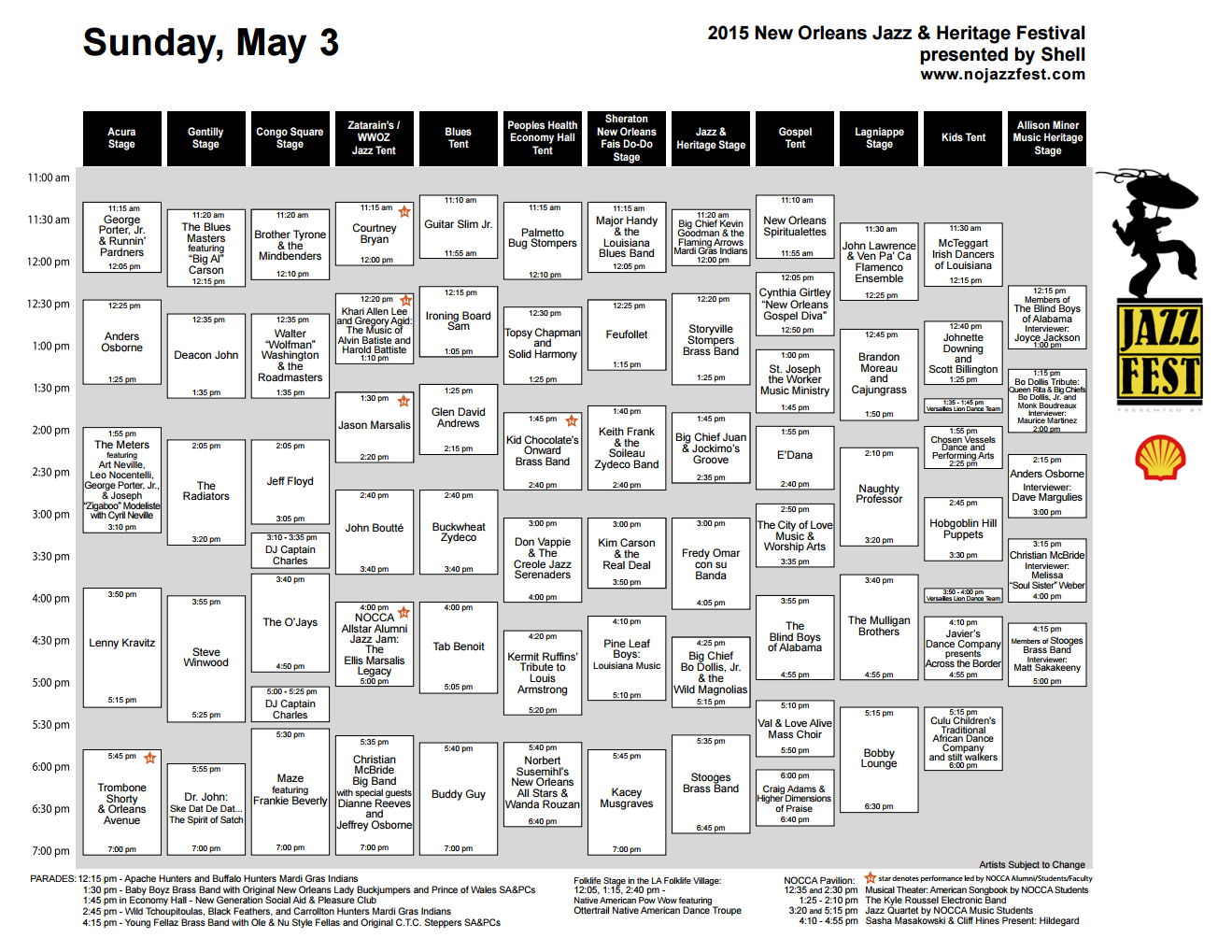 Check out the cubes for each day of Jazz Fest 2015, and start planning your festival now.