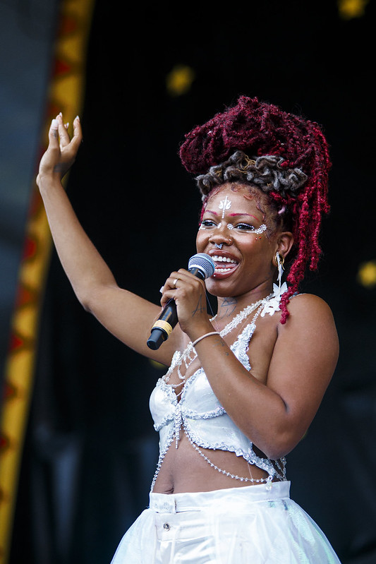 Ìfé has been on my short list of performers to catch in New Orleans. As it turned out, he was at the Jazz & Heritage Stage steps away. Not knowing fully what to expect, unique electronic music was the anticipation. Instead, this is “electronic music” played with instruments. Ìfé receives kudos for both conception and execution, going way back to take us to the future, a veritable Afro-Futurism. As he put it, “No DJs. No backing tracks. Old school joints and new school joints.” The group took the electro-acoustic music of micing up drums and different objects, but instead of the usual result of ambient music, they instead played Afro-Caribbean rhythms and a had Dancehall vibe to make danceable songs for adventurous ears. As if this wasn’t stunning enough, Colombian pop star Goyo joined to perform, including her hit “Tumbao.”