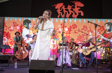 You know how it is: You go around thinking you’ve heard everything, and then you hear “Strawberry Fields Forever” as a cumbia. That was one of the highlights of La Santa Cecelia’s set at Fais Do Do (they also played later at the Cultural Heritage stage). But despite that song choice, and despite their past collaborations with the likes of Elvis Costello and Los Lobos, La Santa Cecelia isn’t a rock band; they find more than enough to explore in Mexican music and its offshoots—for one thing, they have a guitarist who’s solid on rhythm but never solos. The other highlight of their set was a trio of acoustic ranchers driven by accordion. All of it was a vehicle for the voice of Marisol Hernandez, known to her fans as La Marisoul, as powerful and charismatic as they come.—Brett Milano