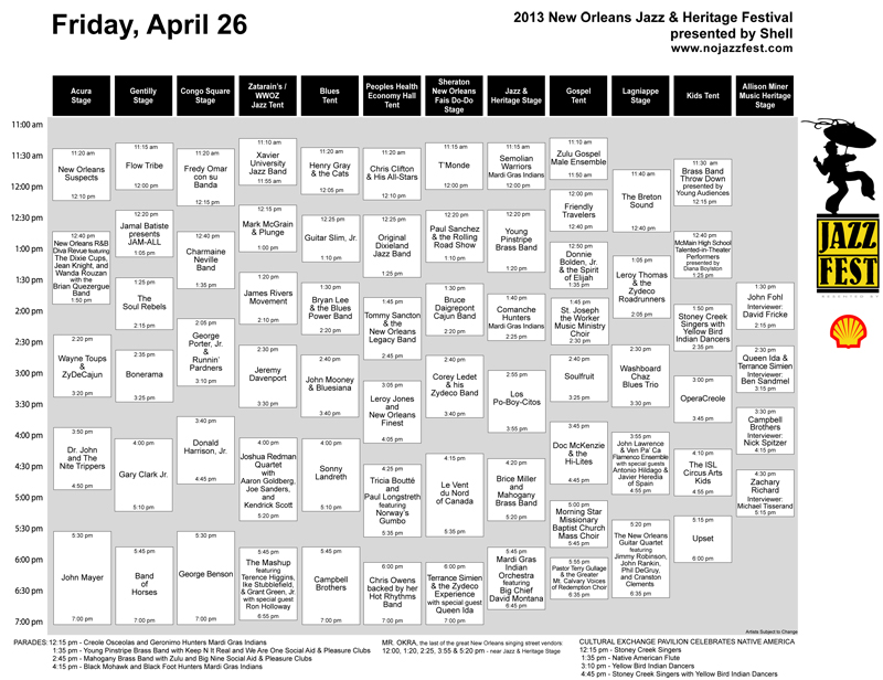 In the meantime, view or download the complete Jazz Fest 2013 schedule cubes by day here!