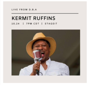 Celebrating 23 years of being signed to Basin Street Records, Kermit Ruffins will be performing live from the d.b.a. stages and streaming virtually via StageIt on Saturday, October 24 at 7 p.m. Tickets are available here.