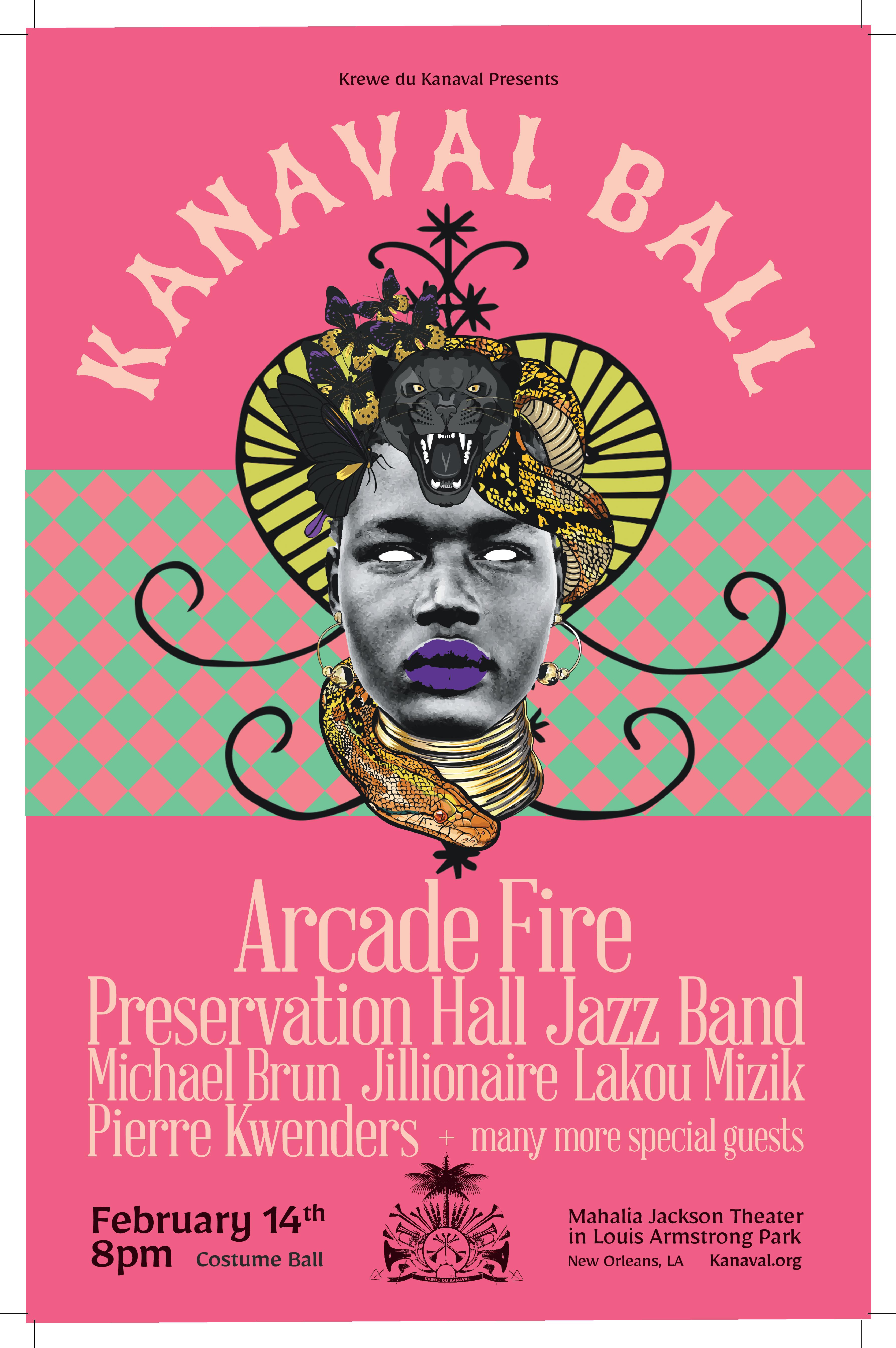 Krewe du Kanaval’s recent conception in 2015 originated when Arcade Fire’s Régine Chassagne (daughter of Haitian immigrants) and Win Butler brought Ben Jaffe and other members of Preservation Hall to Haiti. Their experiences gave birth to the Mardi Gras Krewe —which later became Krewe Du Kanaval — to celebrate the vast history between our two cultures. Moreover, Krewe du Kanaval has various philanthropic initiatives that serve unmet social and cultural needs of both New Orleans and Haiti to continue developing this historical relationship.