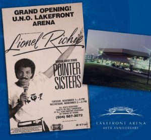 The UNO Lakefront Arena, which was designed by architect Arthur Q. Davis and Nathaniel Curtis and built on The University of New Orleans’ 90-acre East Campus for $38 million, celebrates 40 years of rich history including more than 1,200 concerts, nearly 900 commencement ceremonies, as well as upwards of 1,200 basketball games and events. Since opening its doors on Nov. 1, 1983, with Lionel Richie and The Pointer Sisters, the Arena has been a world-class destination for live entertainment – bringing in more than seven million patrons to experience legendary artists, global leaders, family entertainers, thousands of graduates, exceptional athletes and many more icons.